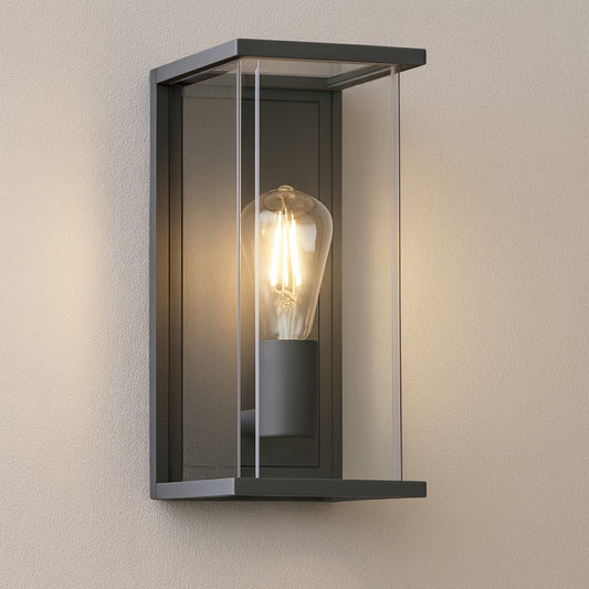 CGC ADRIANA Anthracite Grey E27 Outdoor Wall Light Lantern Clear Diffuser IP54