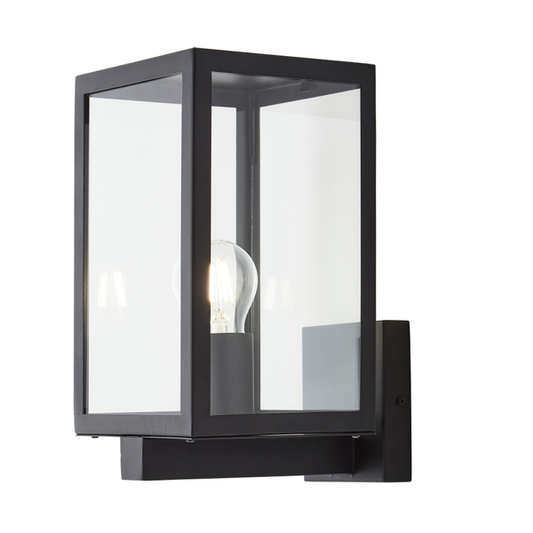 CGC ARCHIE Black Outdoor Up Wall Light Lantern Clear Glass IP44 E27