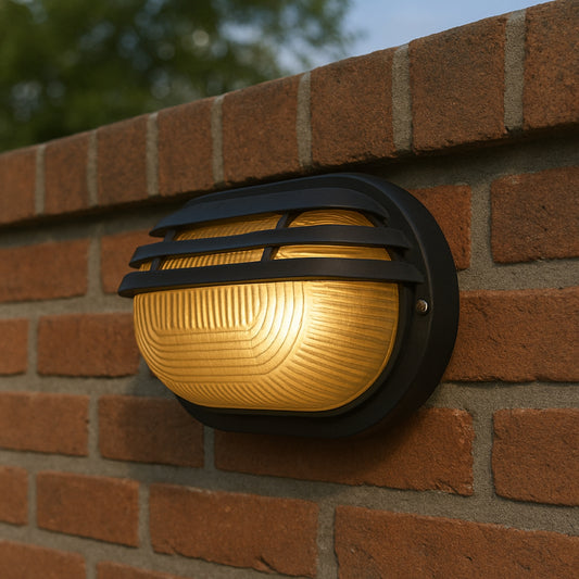 CGC GINA Black Oval Plastic Cage Bulkhead Wall Or Ceiling Light