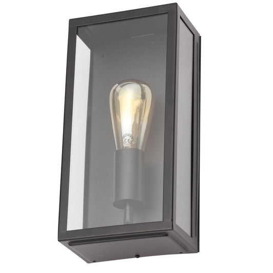 CGC ARCHIE Anthracite Dark Grey Outdoor Up Wall Light Lantern Clear Glass IP44 E27