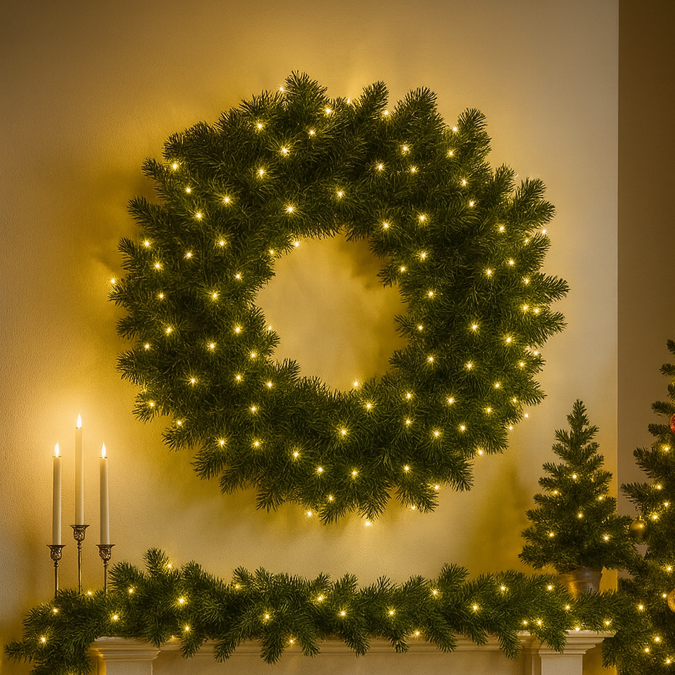 CGC 70cm Large Luxury Green Pine Pre Lit LED Christmas Wreath