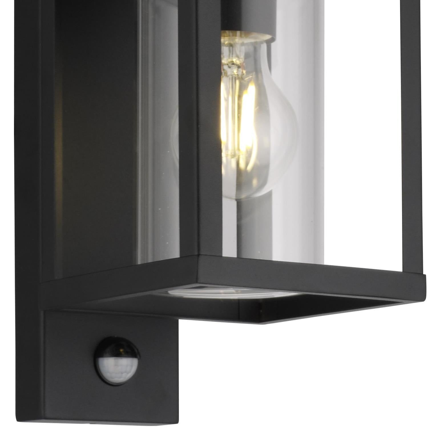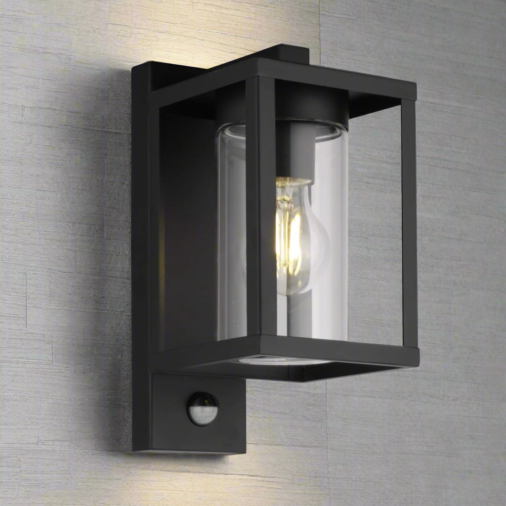 CGC ABEL Matt Black Box Lantern Wall Light with PIR Motion Sensor