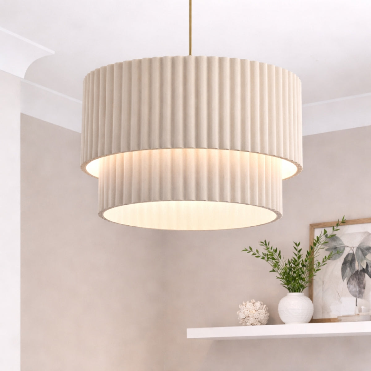 The elegant narrow scalloped edge and layered silhouette reflect one of this season’s most sought-after lighting trends, while the neutral linen fabric ensures timeless versatility. Perfect for living rooms, bedrooms and dining areas, this large scalloped ceiling light shade pairs effortlessly with both modern and classic interiors.