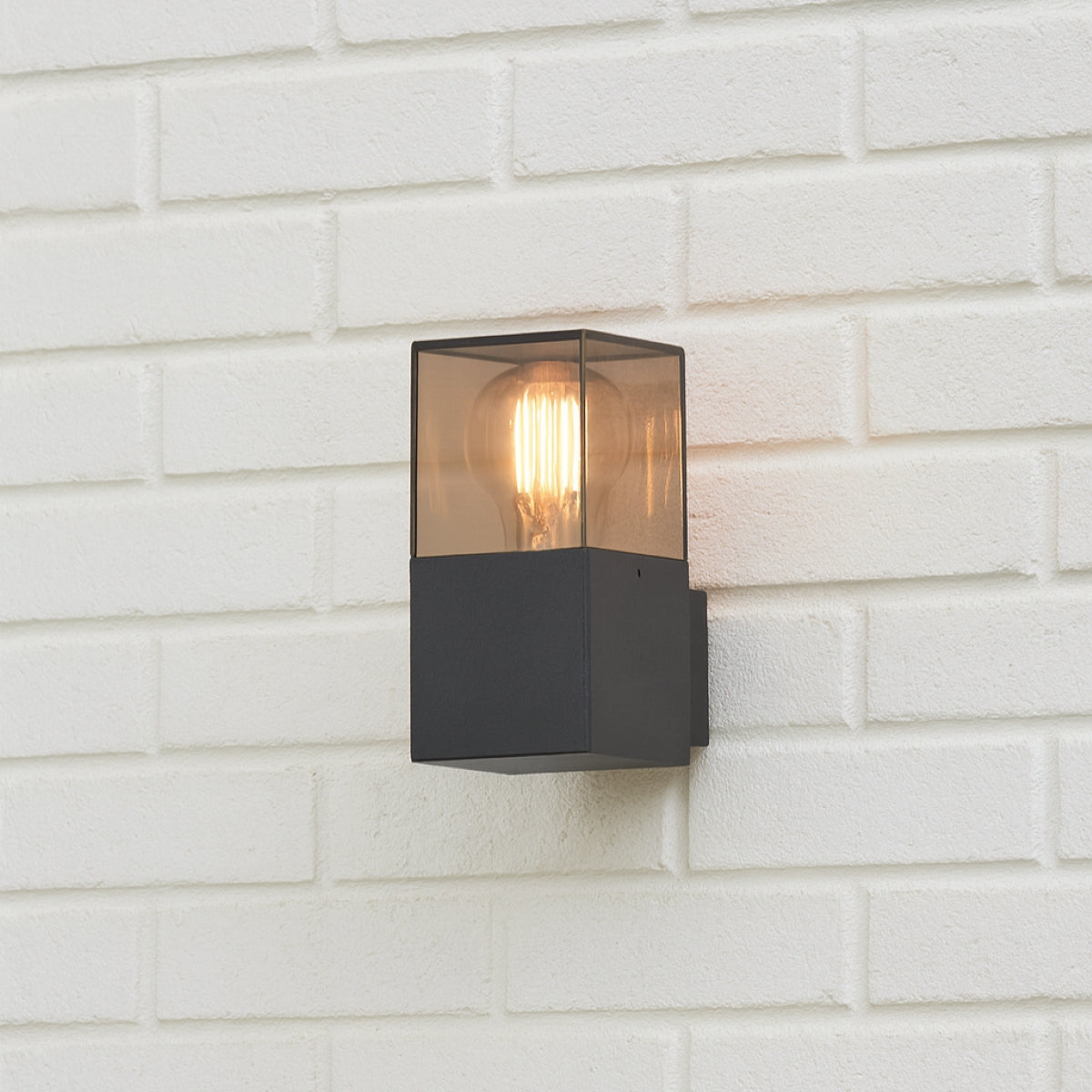 CGC AMARA Anthracite Dark Grey Outdoor Wall Light with Smoked Diffuser IP44 E27