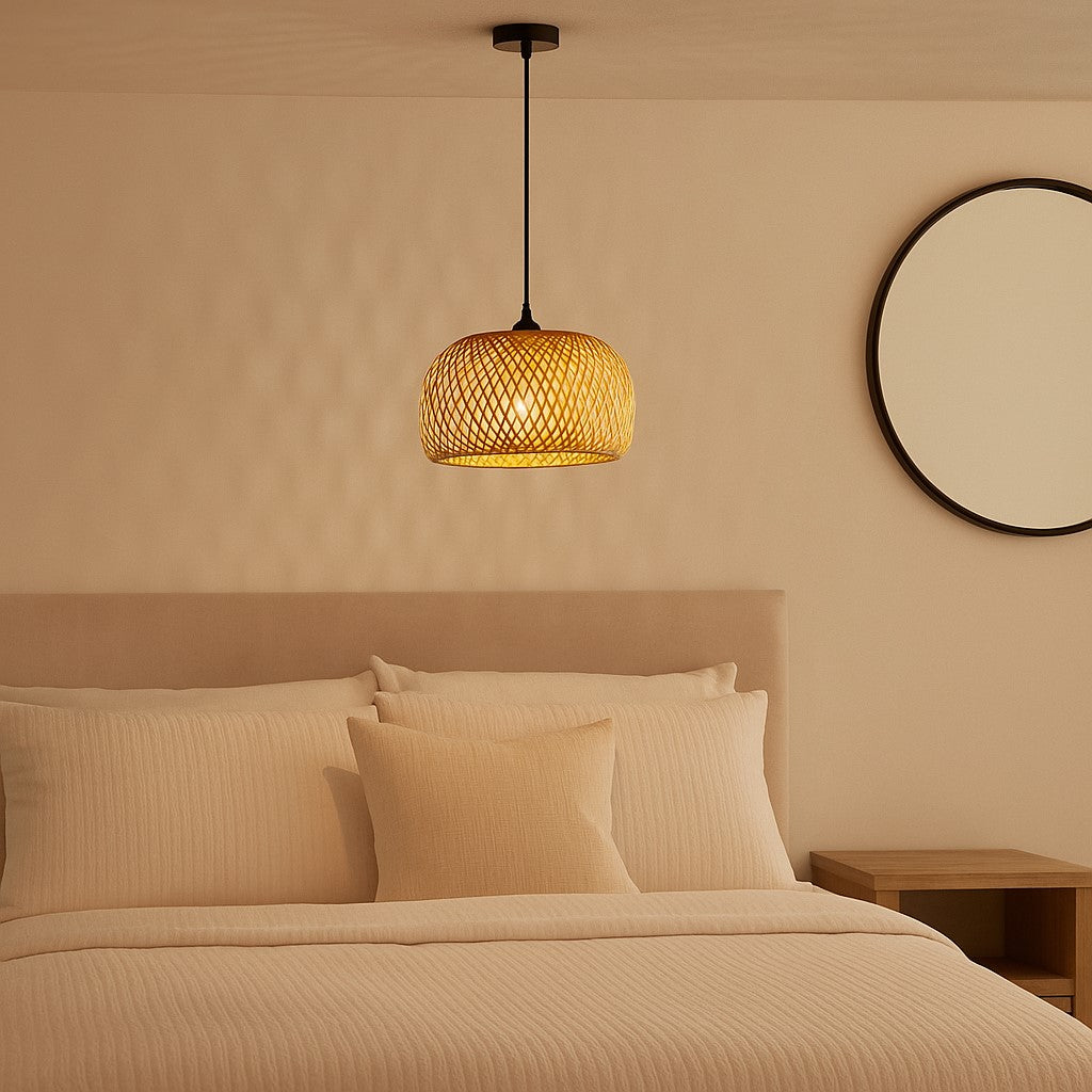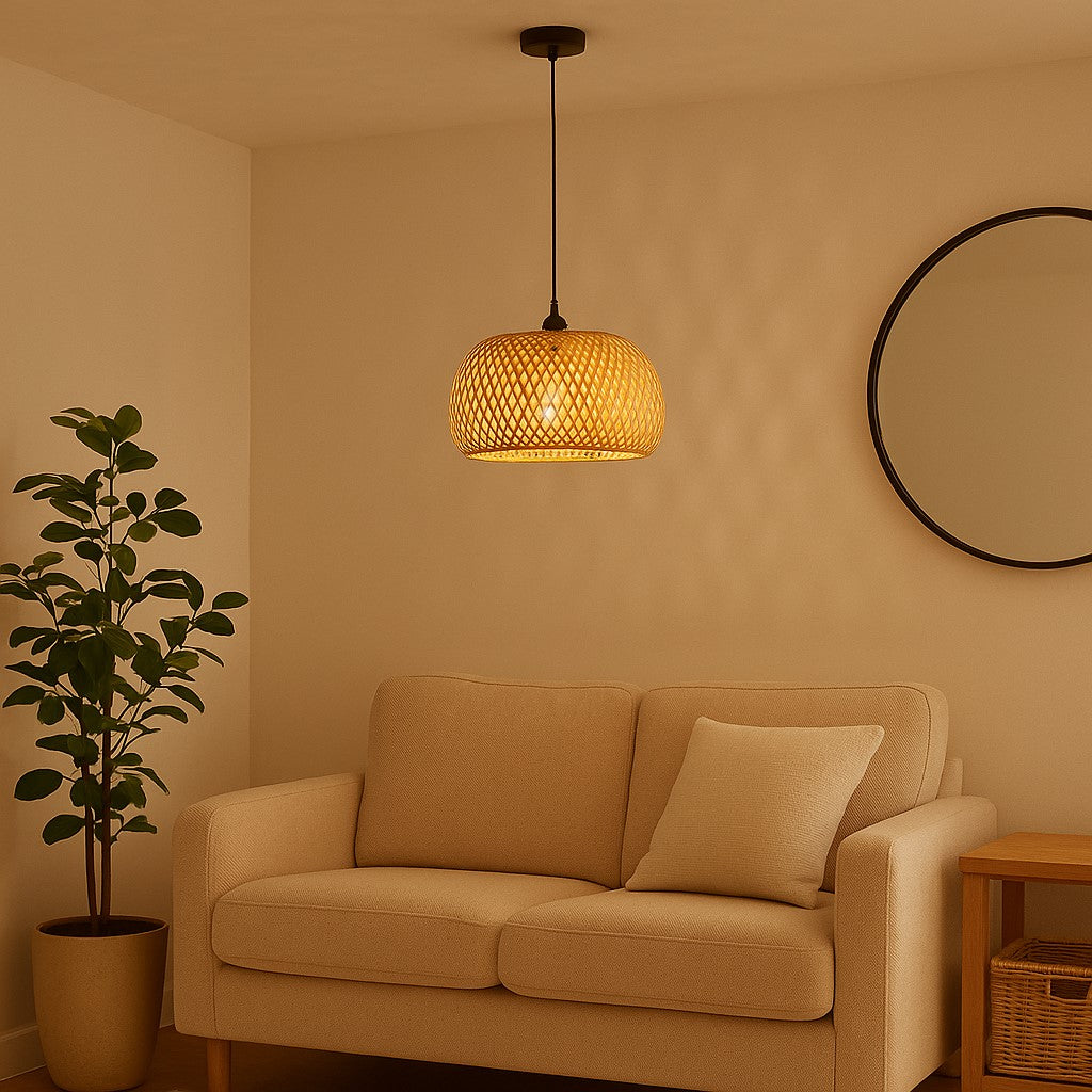 Enhance the ambiance of your room with the Bethany bamboo lamp shade. Hand made of bamboo, a popular eco-friendly material, this lampshade boasts an elegant and unique design that adds a natural and refreshing touch to any room. Transform your space with Bethany and embrace a more sustainable lifestyle.