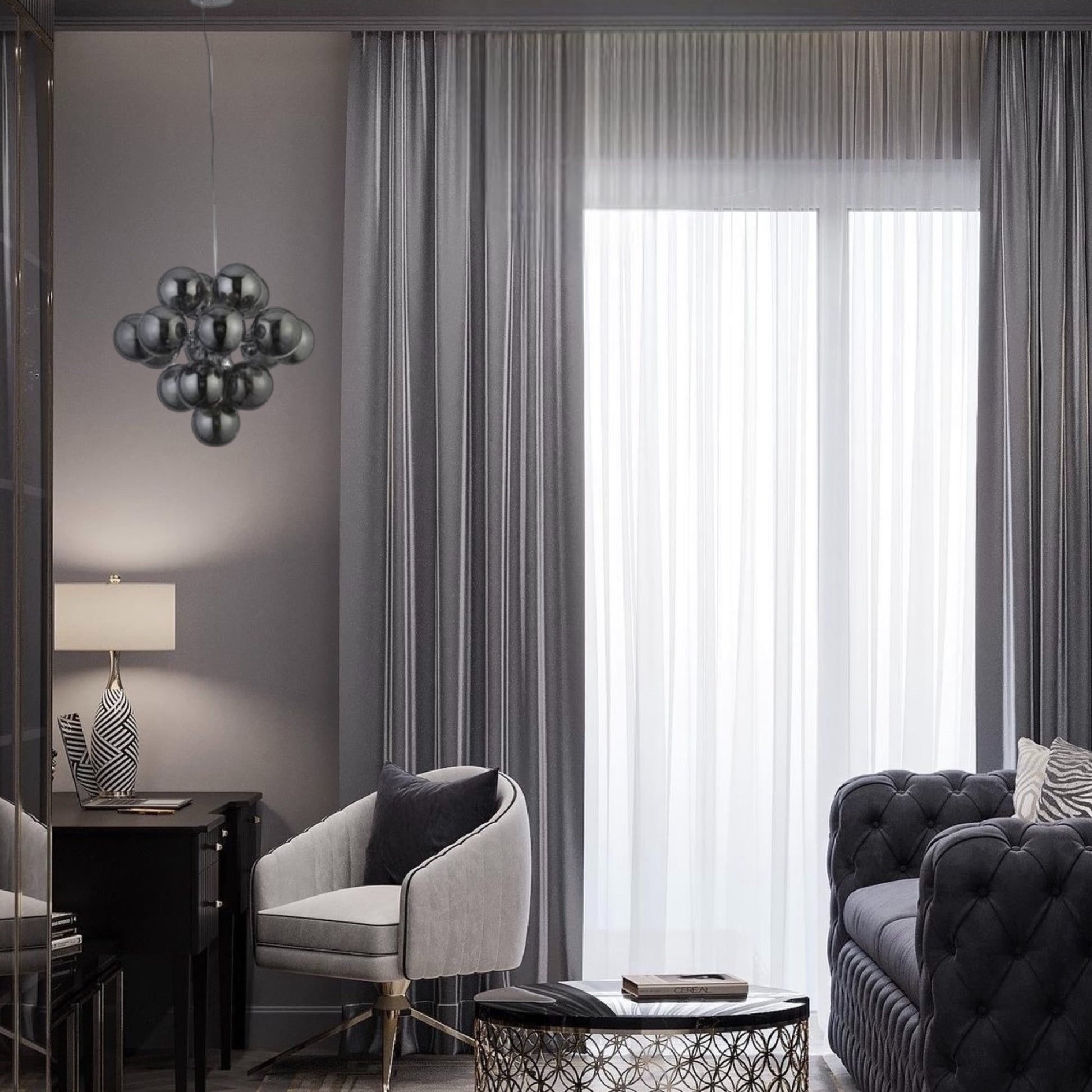 The Bubble ceiling pendant has 17 lights within stunning smoked glass balls, hanging from a simple chrome fitting. This minimalist pendant is sleek and modern and will add style and drama to any room in your home