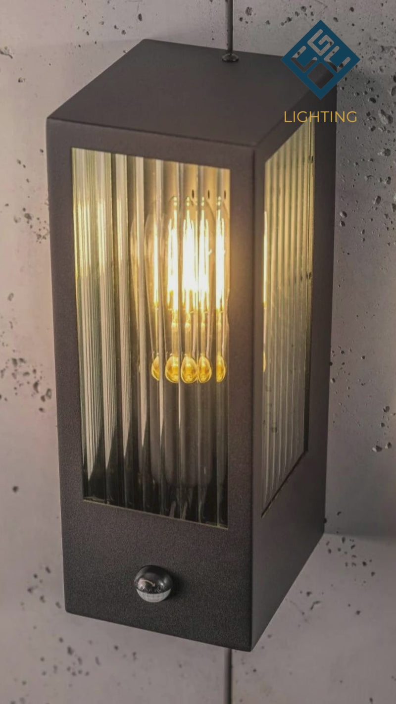 CONSTRUCTION: Made from durable rust proof diecast matt black stainless steel with bevelled glass panels to display the bulb and that classic look and create a warm glow, integrated PIR Motion Sensor
