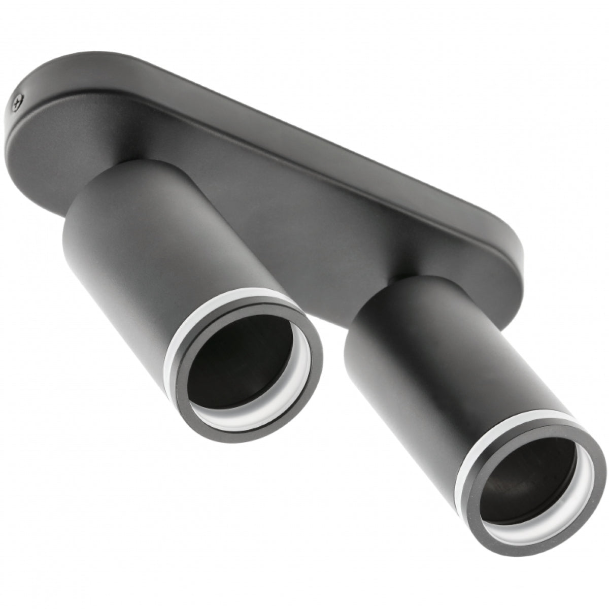 CGC SOLIS Black Double GU10 Ceiling Spotlight with Halo Ring Adjustable Twin Spot Bar