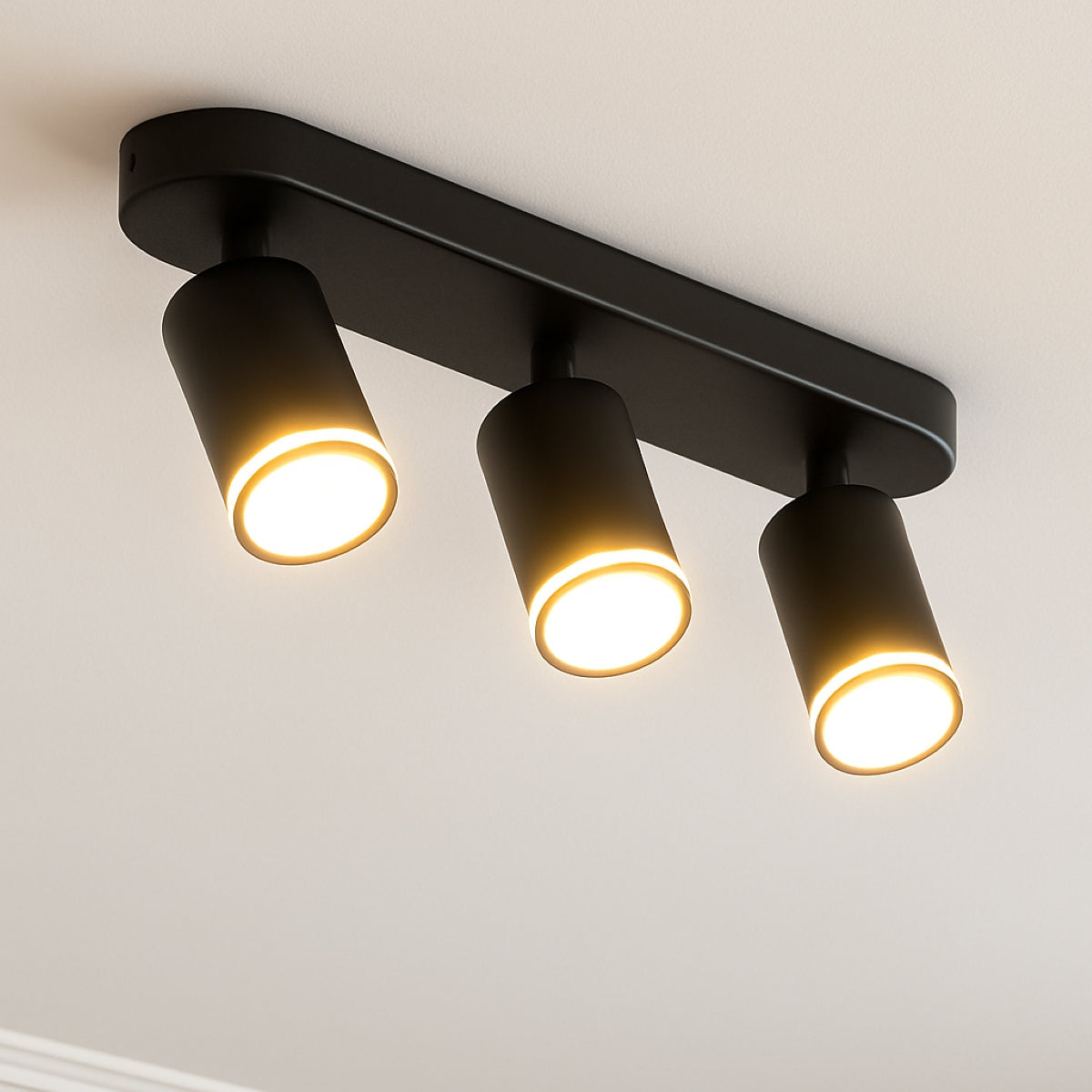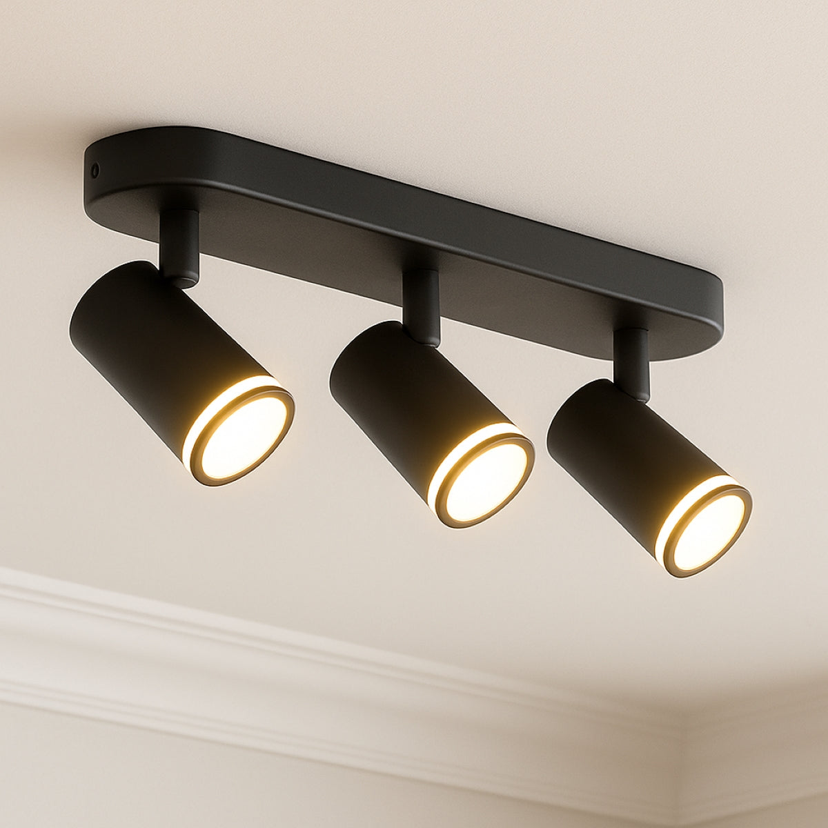CGC SOLIS Black Triple GU10 Ceiling Spotlight with Halo Ring Adjustable Spot Bar