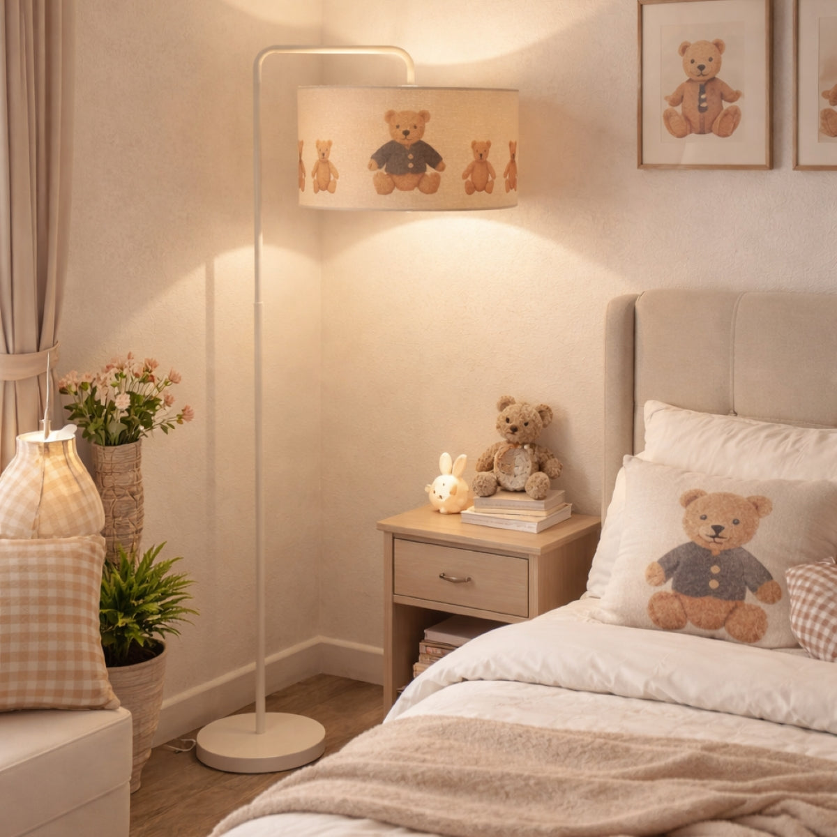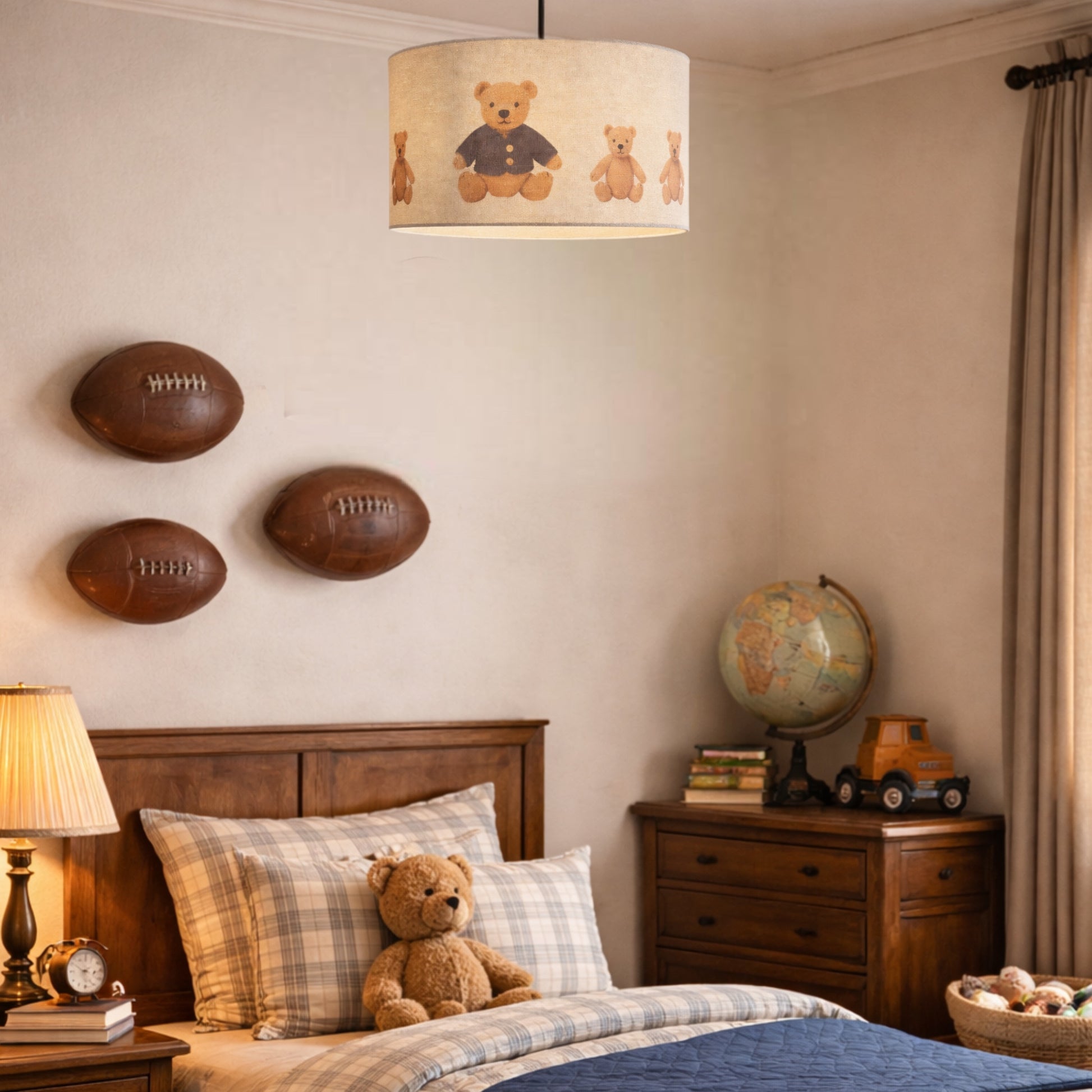 Give your children's bedroom or nursery a gorgeous upgrade with the Blake oatmeal linen Teddy Bear lamp shade. Crafted from premium textured linen fabric with a matching luxury fabric lining, this shade blends contemporary style with timeless elegance. Perfect as a ceiling light shade or a modern lamp shade for your table or floor lamp.