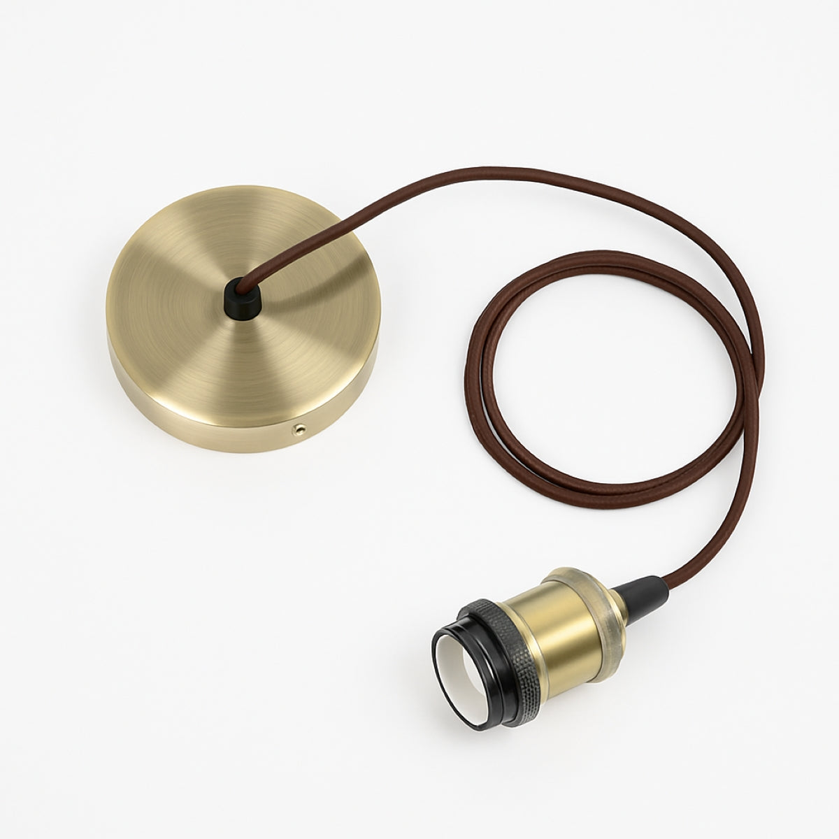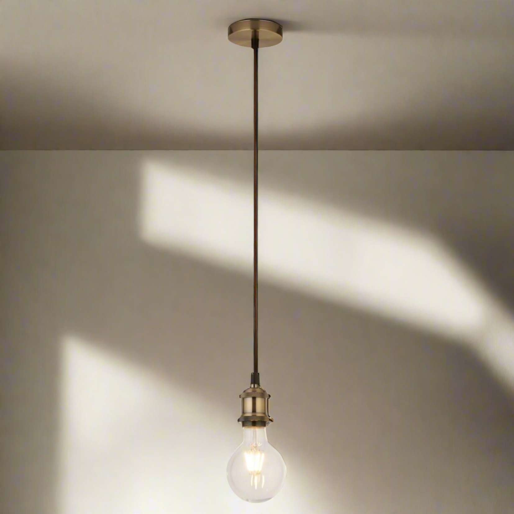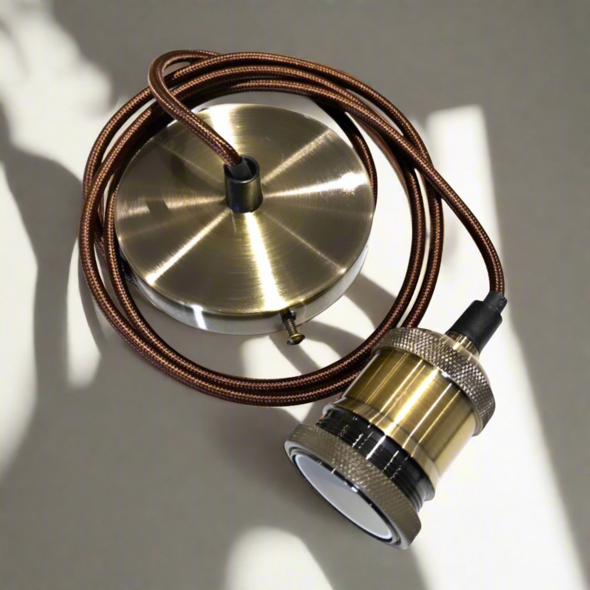 CGC CASSIE Antique Brass 1.5m Adjustable E27 Ceiling Suspension Cable Pendant and Matching Ceiling Rose