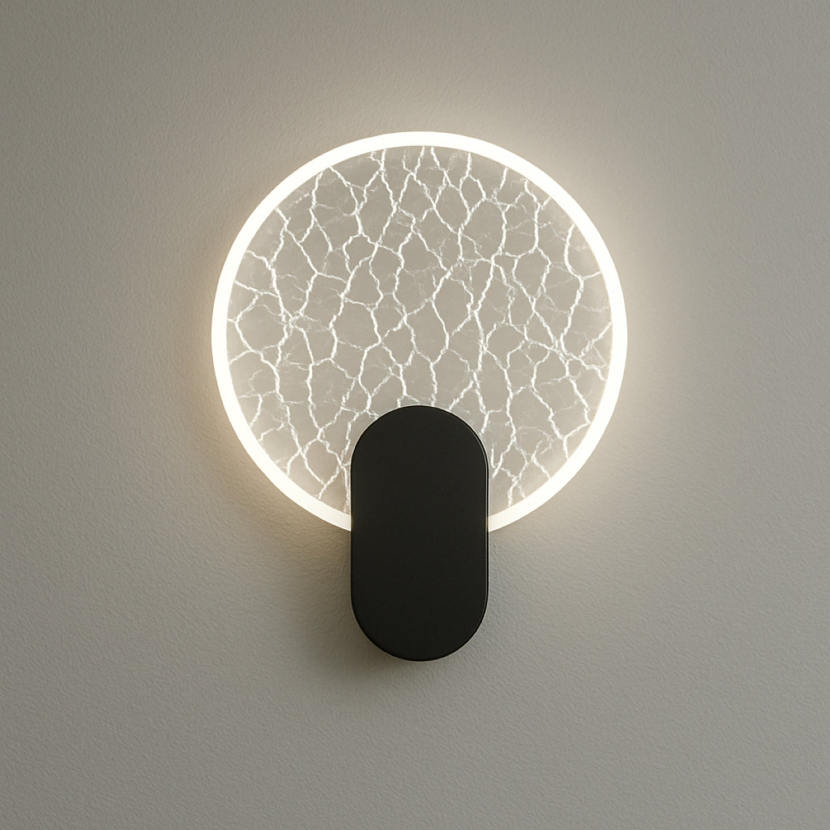 CGC CRACKLE Indoor Round LED Wall Light Black Gold and Crackle Glass Effect 6W 4200k Natural White 730lm
