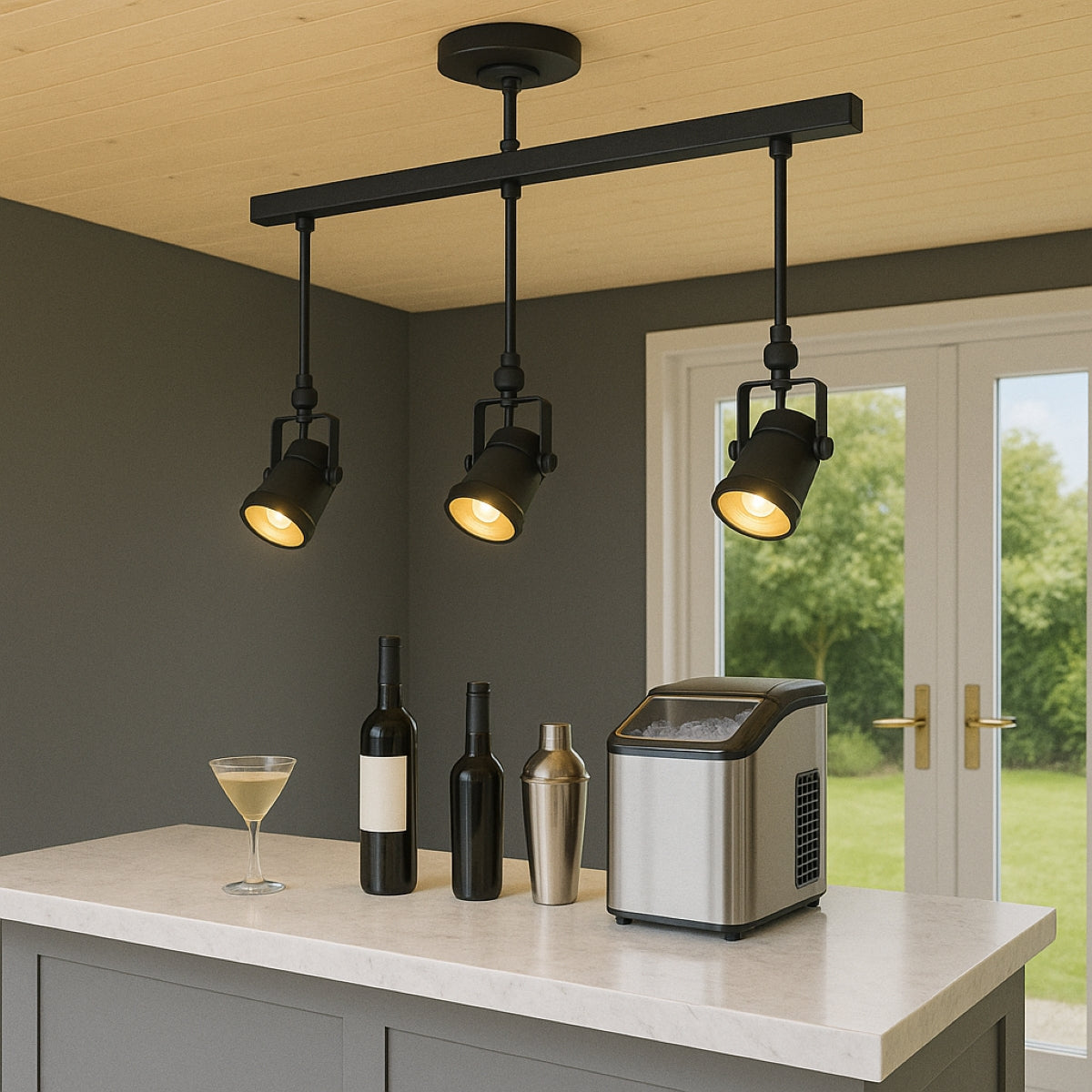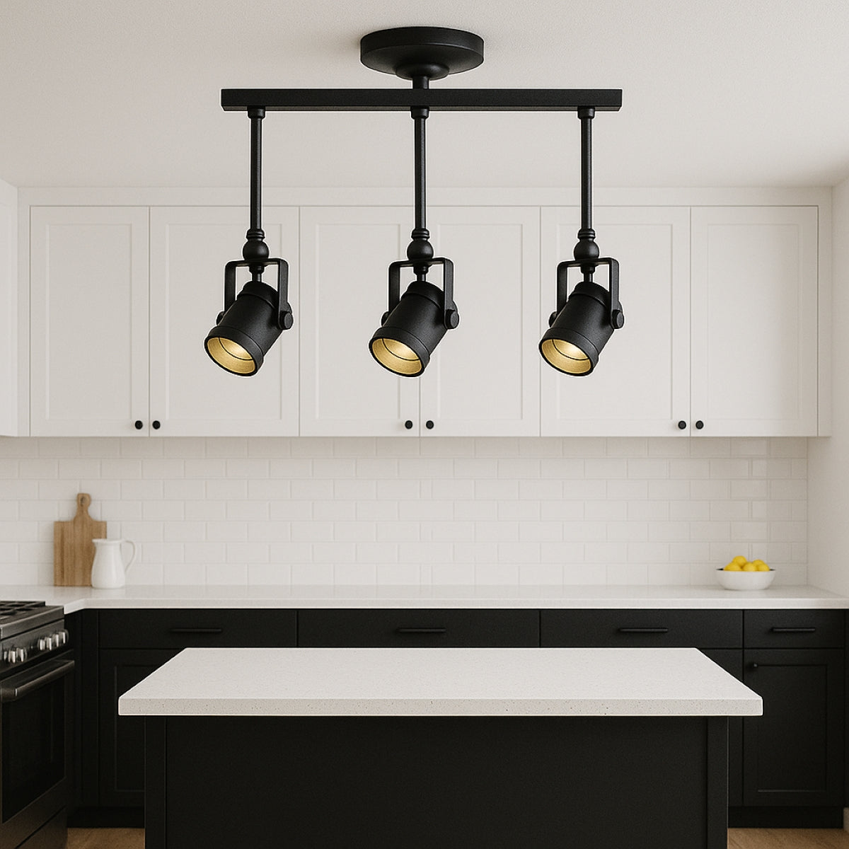 Black and gold lighting has been very popular in the lighting sector for some time. This is not only because the resulting contrast has such a harmonious appearance, but also because of the fantastic lighting effect that is produced by the golden inner surface of the lampshade. Our Demi pendant light is a very attractive light fitting for all kinds of modern living space especially over counter and kitchen islands. Adjustable heads
