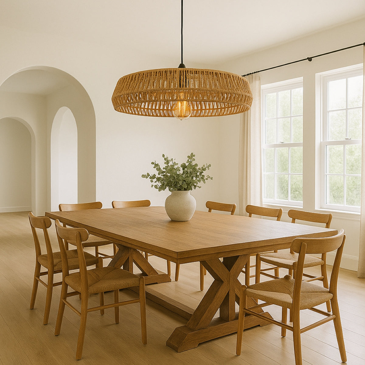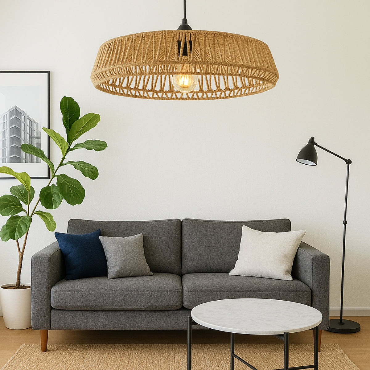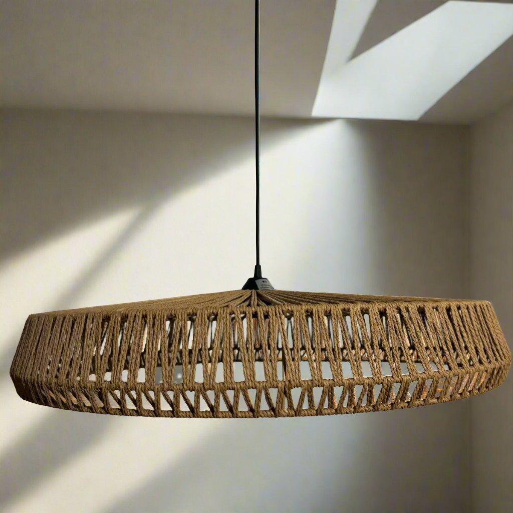 Upgrade your interior design with the CGC Extra Large 70 cm Natural String Round Woven Easy Fit Lampshade. Crafted from high-quality natural string, this lampshade adds a touch of sophistication to any space. The convenient easy fit design allows for a hassle-free installation, while the robust construction ensures long-lasting durability. Experience elevated lighting with this trendy and timeless addition to your home decor. With natural materials as the current popular choice for home decoration, CGC presents the Natural Rope Ceiling Lamp, a charming element that infuses a natural and minimalist style with a distinctive character to any room.