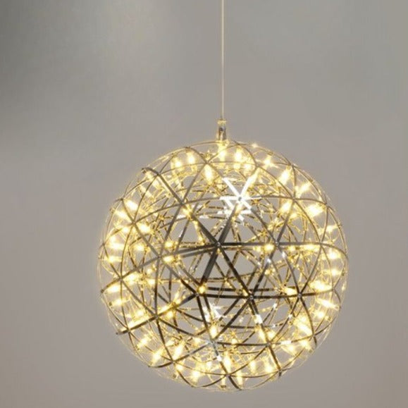 CONSTRUCTION: Modern chrome globe with white lights to give a firework effect