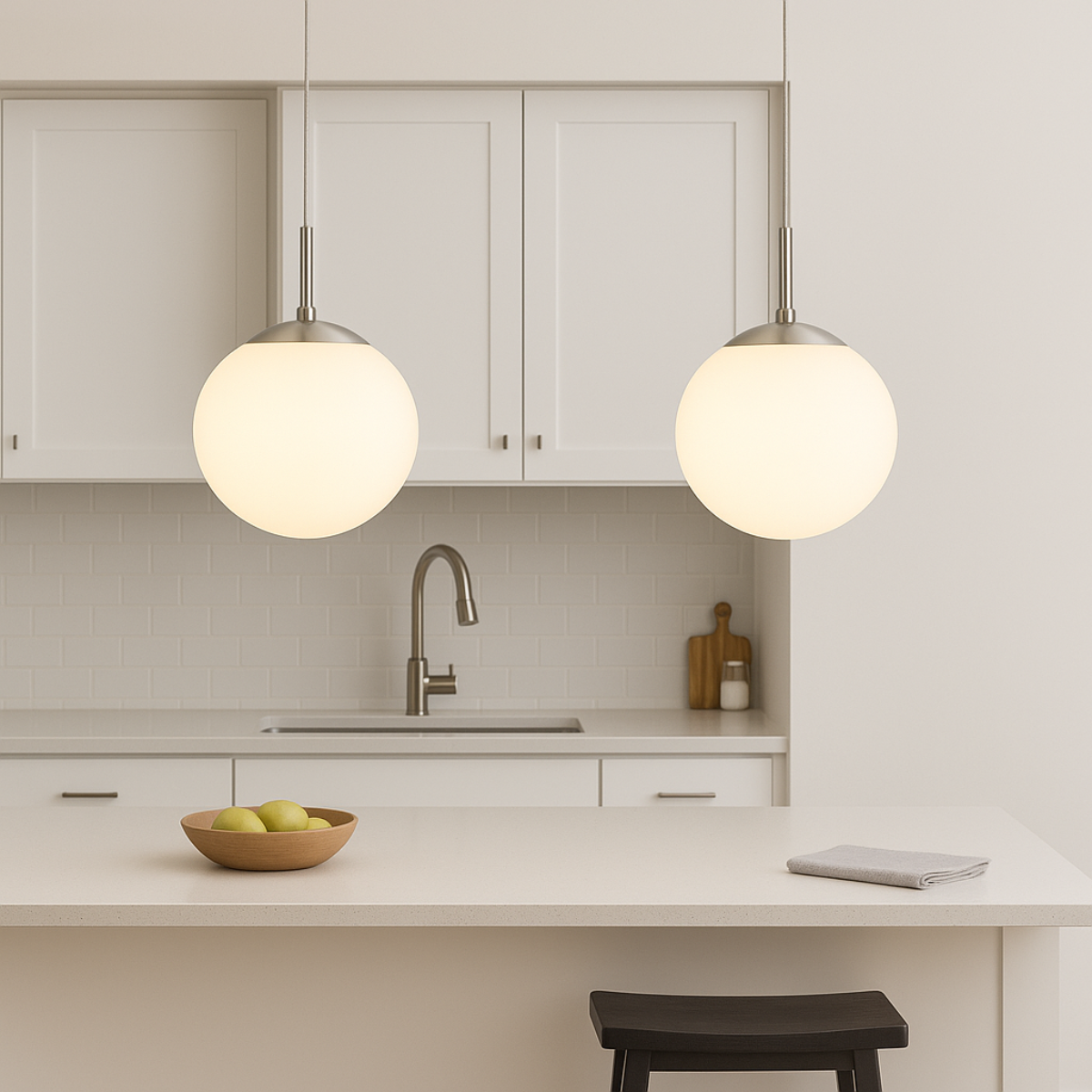 Add a touch of modern elegance to your home with our Frazer adjustable pendant light. The light has been handblown to create something spectacular, this opal glass light fitting with a chrome fittings is ideal for the modern home. Dimmable light fitting compatible with a dimmable bulb.