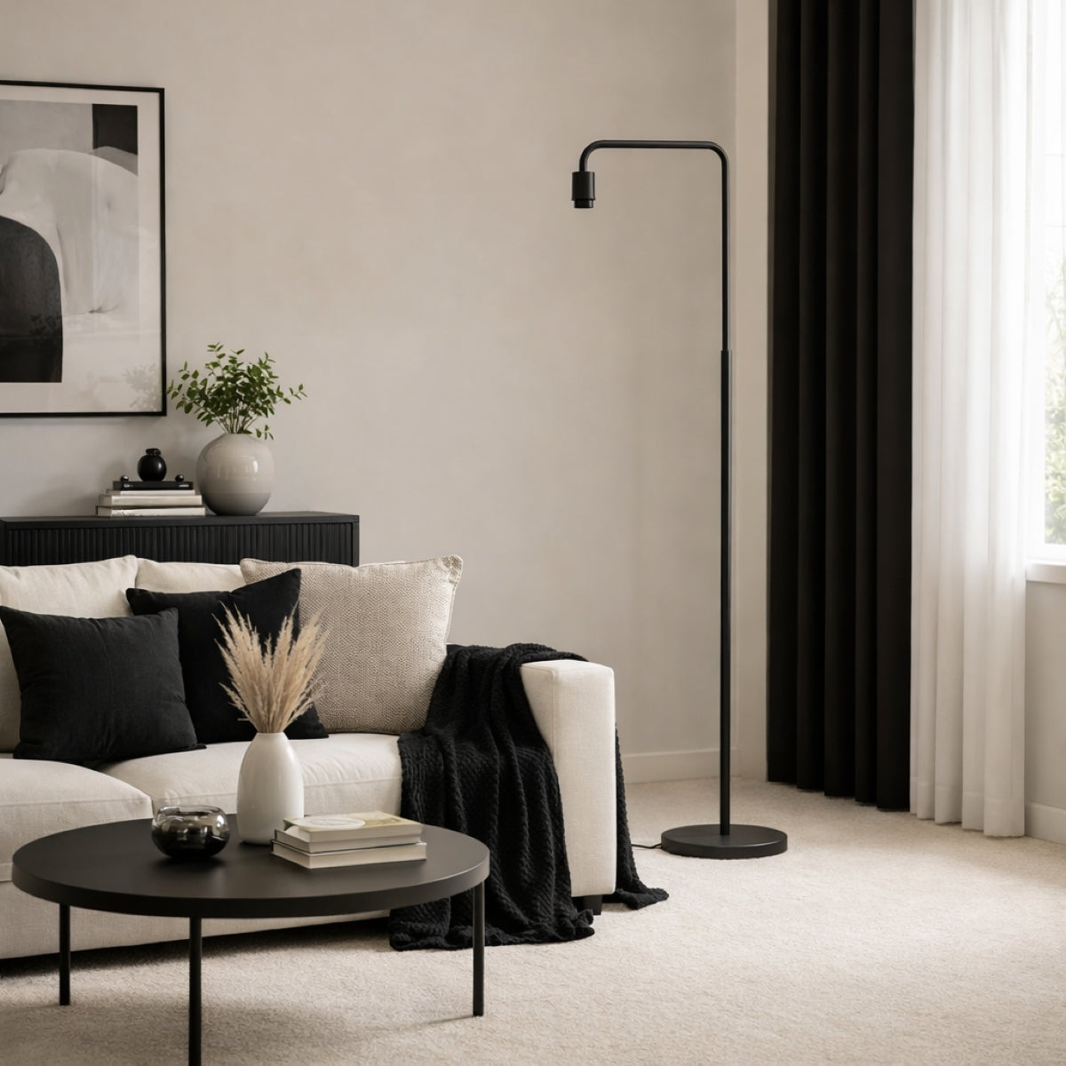 The Kyra floor lamp paired with our large scalloped shades combines high quality materials and on trend design. The floor lamp is finished in matt black, and the large scalloped shades with matching inner linings create a stunning illumination.