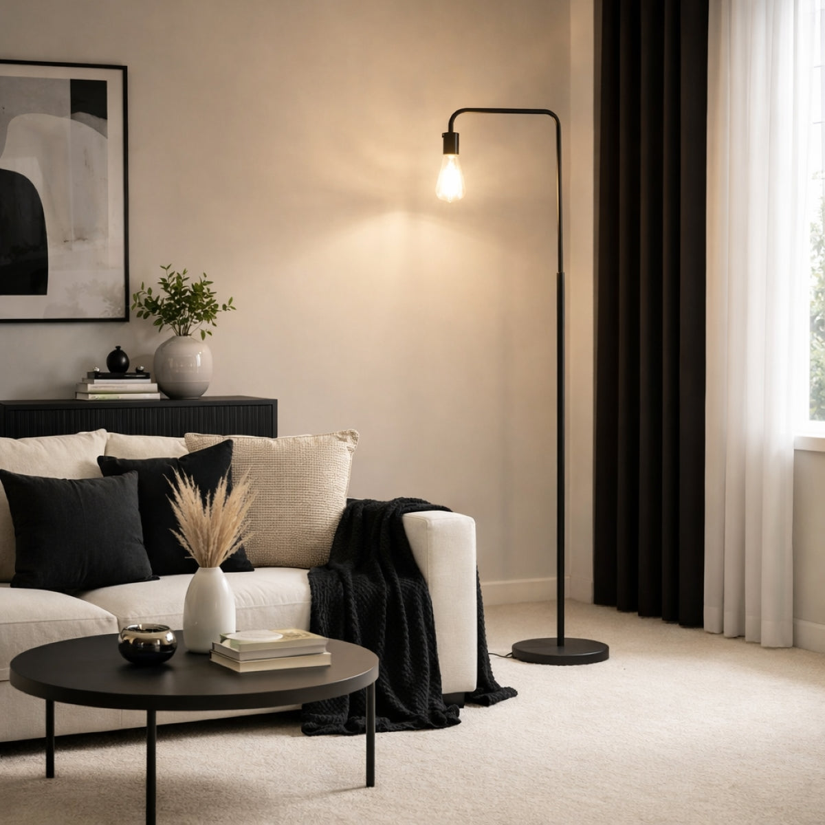 CGC Kyra Matt Black Angled Floor Lamp with Large Scalloped Lampshade