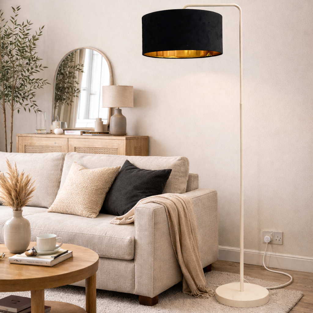CGC Kyra Cream Angled Floor Lamp with Large 45cm Velvet Lampshade