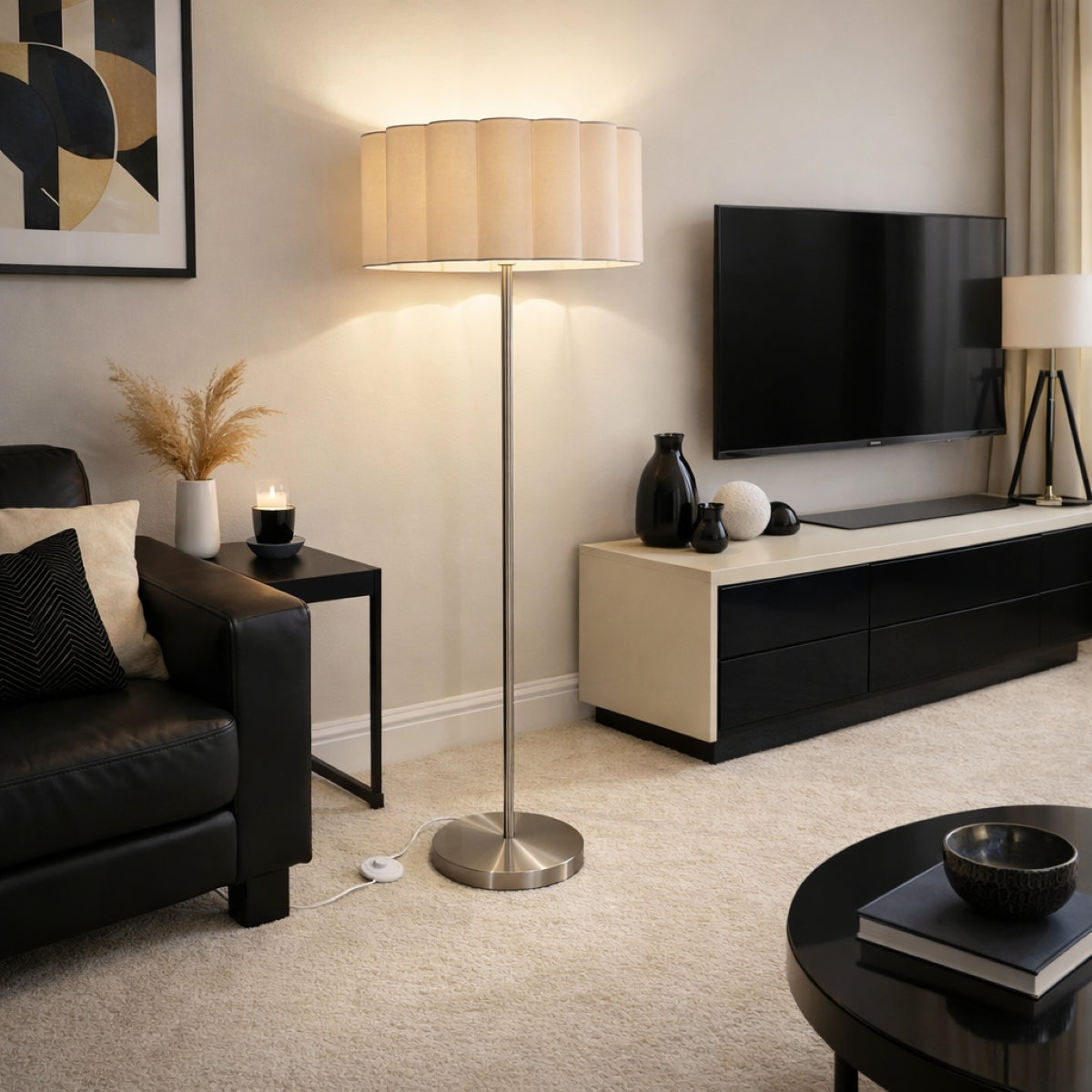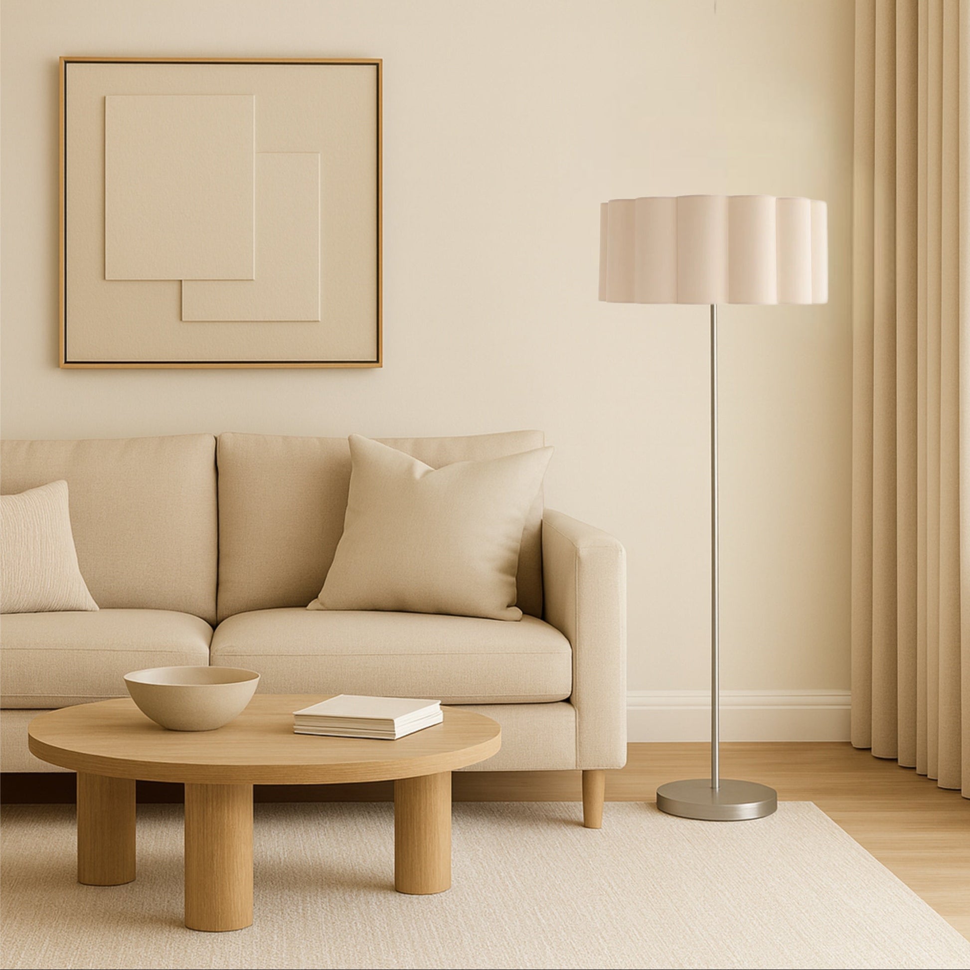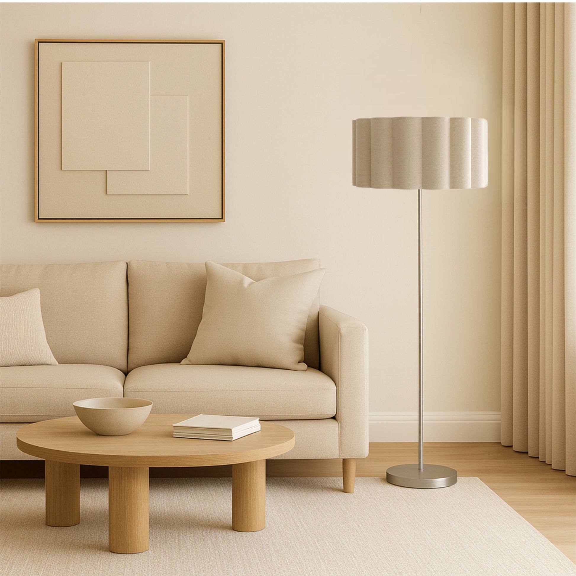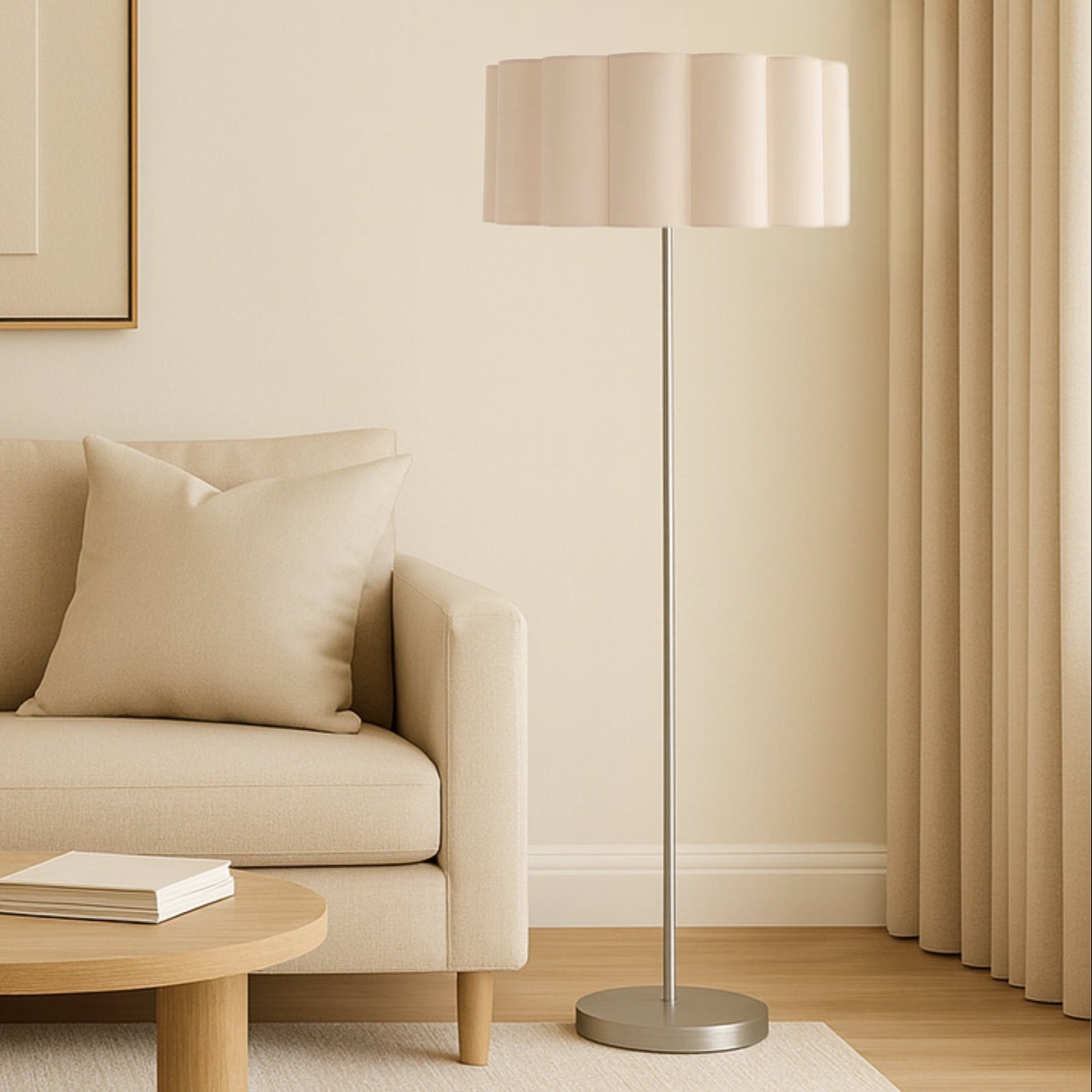 CGC Lena Brushed Nickel Straight Floor Lamp with Large Scalloped Lampshade