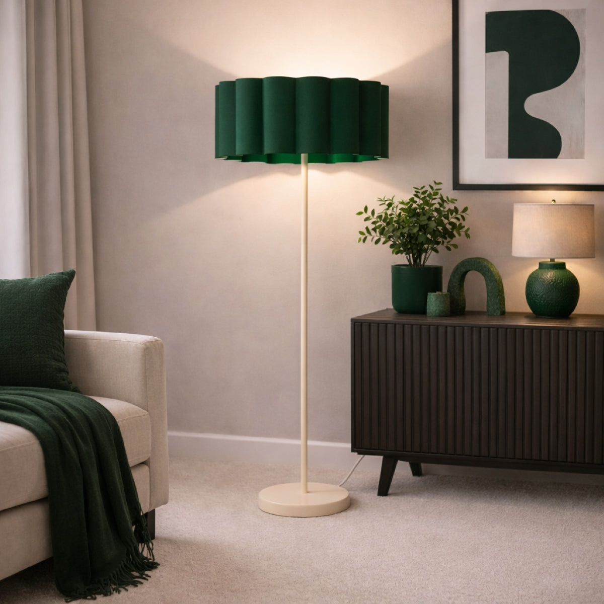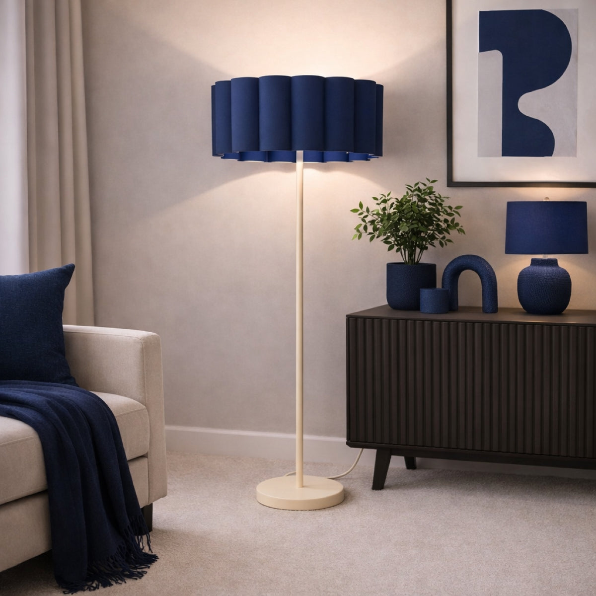 CGC Lena Cream Off White Straight Floor Lamp with Large Scalloped Lampshade