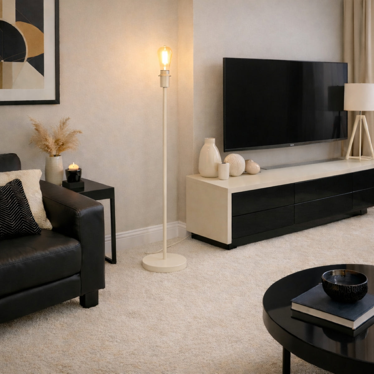The Lena floor lamp paired with our large scalloped shades combines high quality materials and on trend design. The floor lamp is finished in cream, and the large scalloped shades with matching inner linings create a stunning illumination.