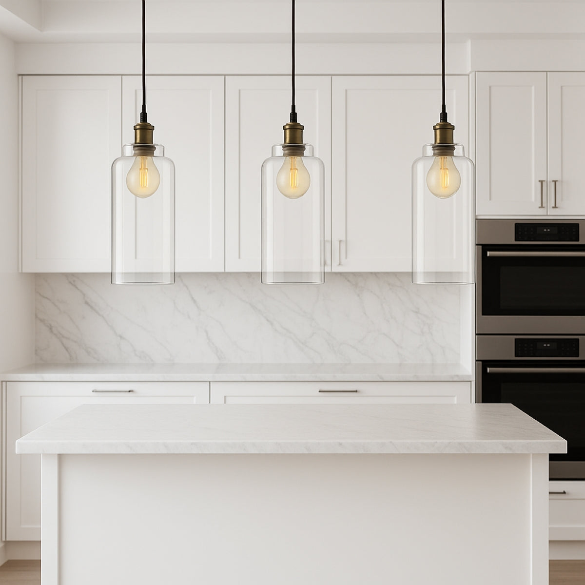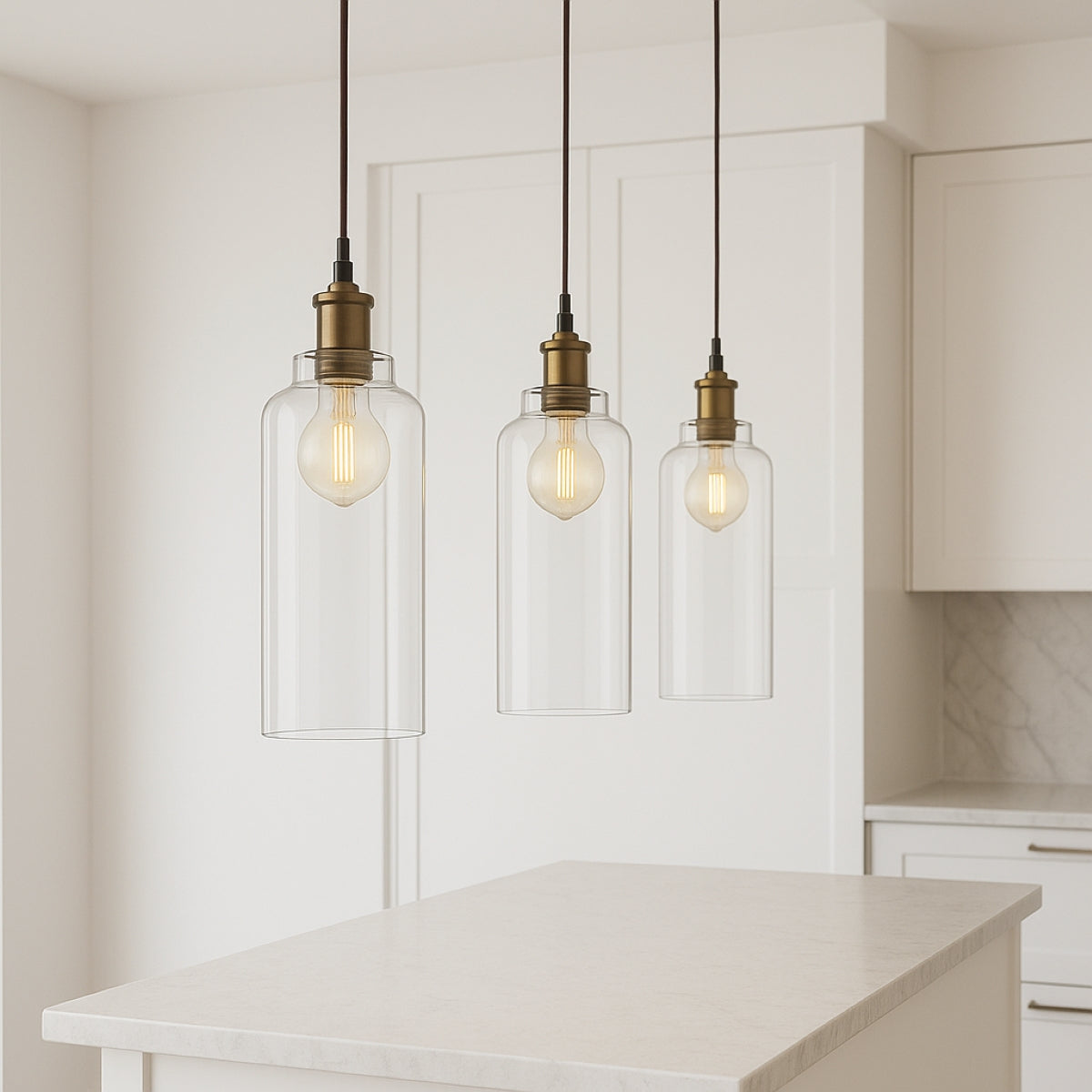 Glass lighting has proven very popular in the lighting sector, and we are extremely happy to introduce the Margot cylinder slim glass lampshade to our range. Our clear glass easy fit light pendant is a very attractive light fitting and easy fit means you can give your room a makeover by simply attaching it to an existing light fitting. This modern glass shade is perfect for all kinds of modern living space especially over counter and kitchen islands.