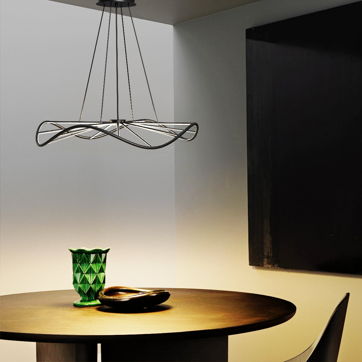 CONSTRUCTION: Modern wave shaped metal pendant with integrated LED
