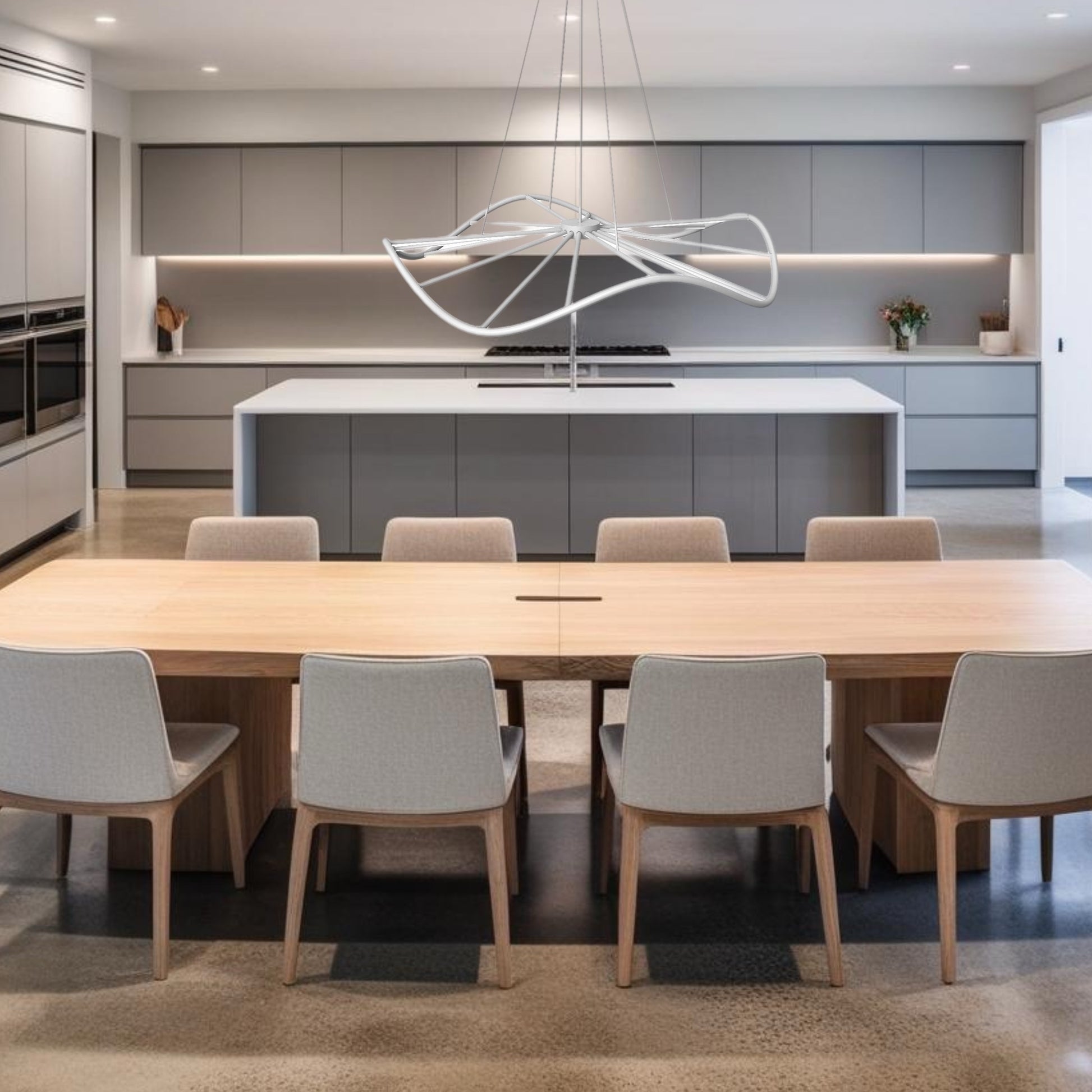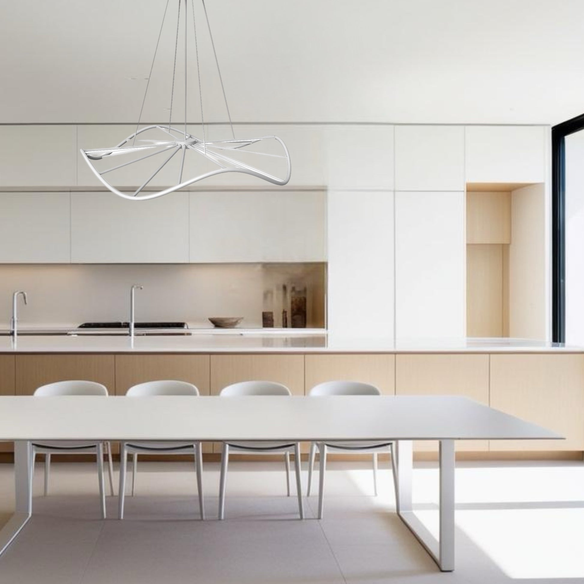 CONSTRUCTION: Modern wave shaped metal pendant with integrated LED
