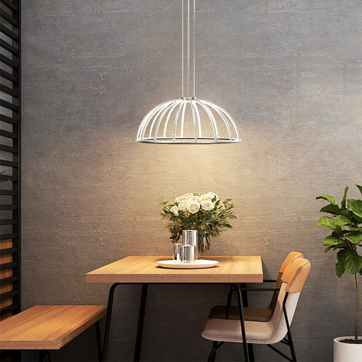 CONSTRUCTION: Modern hemisphere shaped metal pendant with integrated LED