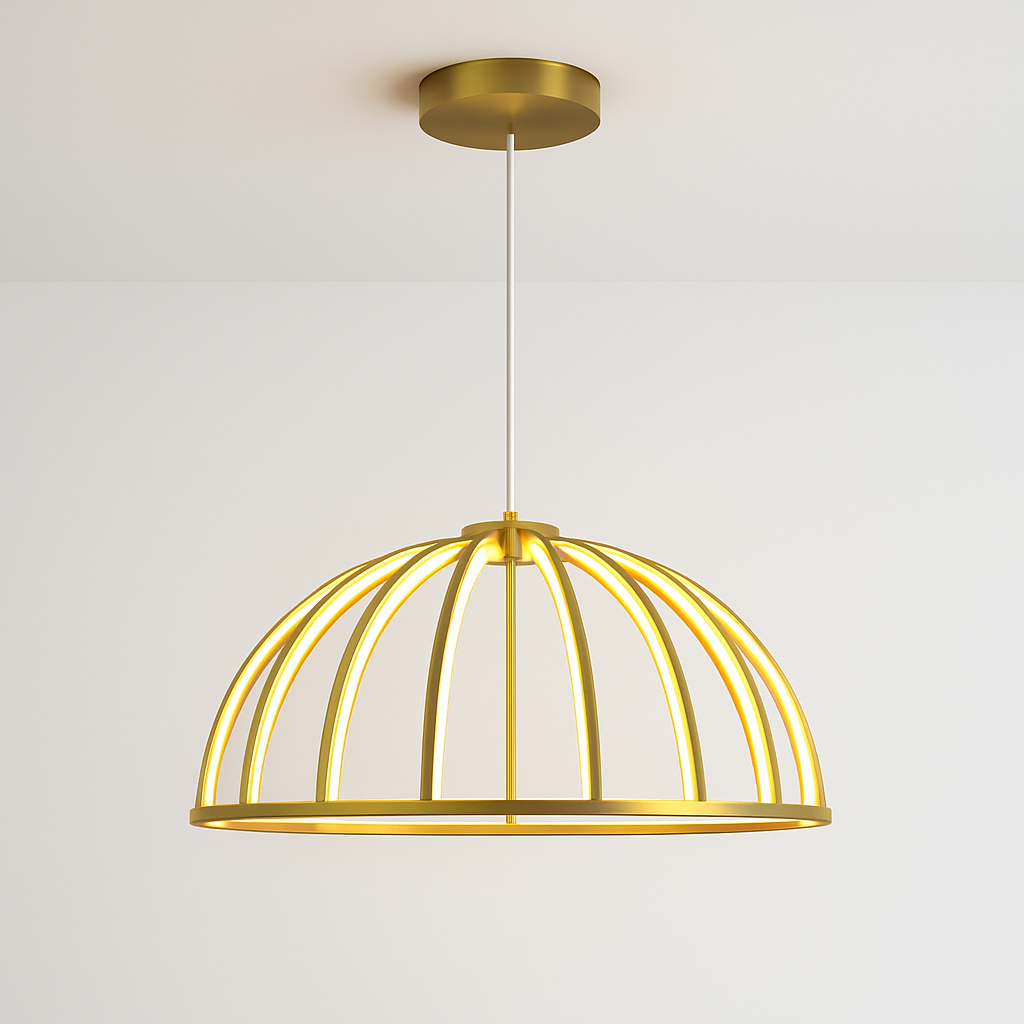 CONSTRUCTION: Modern hemisphere shaped metal pendant with integrated LED