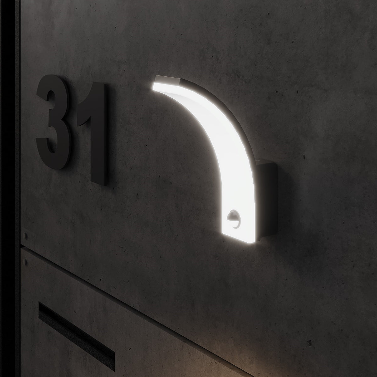 CGC MATEO Graphite Curved LED Wall Light with PIR Motion Sensor Full Opal Front Diffuser