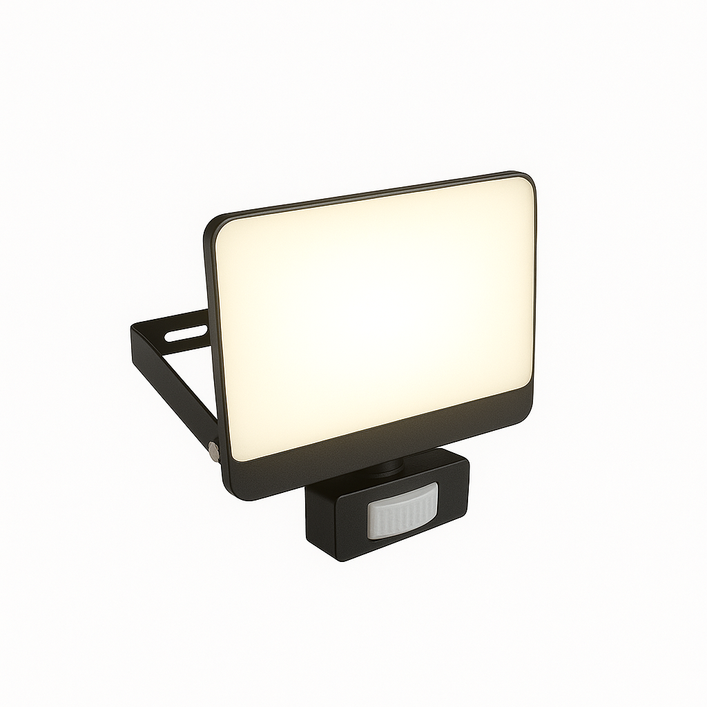 CGC PARRY 15W LED PIR Motion Sensor Floodlight Black Body with Full Front White Opal Diffuser 1300lm 4000k
