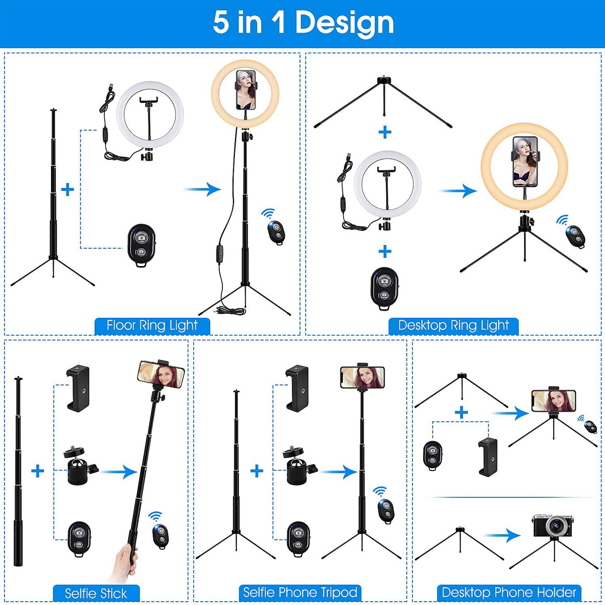 - 360-Degree Rotation: Easily adjust the ring light's position to achieve the desired lighting effect for your content.