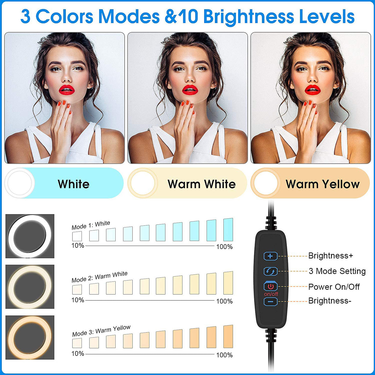 - 11 Brightness Levels: Fine-tune the brightness of each lighting mode to achieve the perfect illumination for your content.