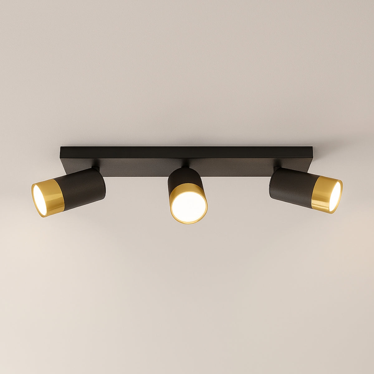 CGC PUZON Black & Gold GU10 Adjustable Triple Three Head GU10 Ceiling Spotlight Bar Light