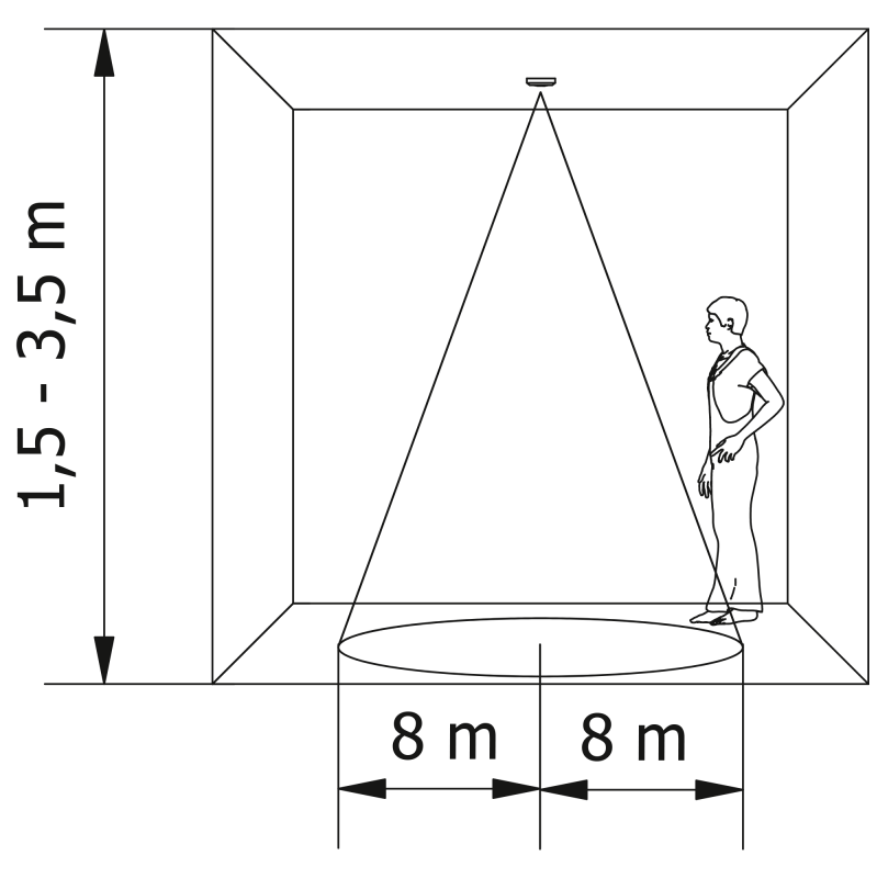 The CM-15 motion sensor is a modern device that uses high-frequency electromagnetic waves (5.8GHz). Thanks to its easy installation in a suspended ceiling (mounting hole 67-72 mm), this sensor is the ideal solution for different spaces.