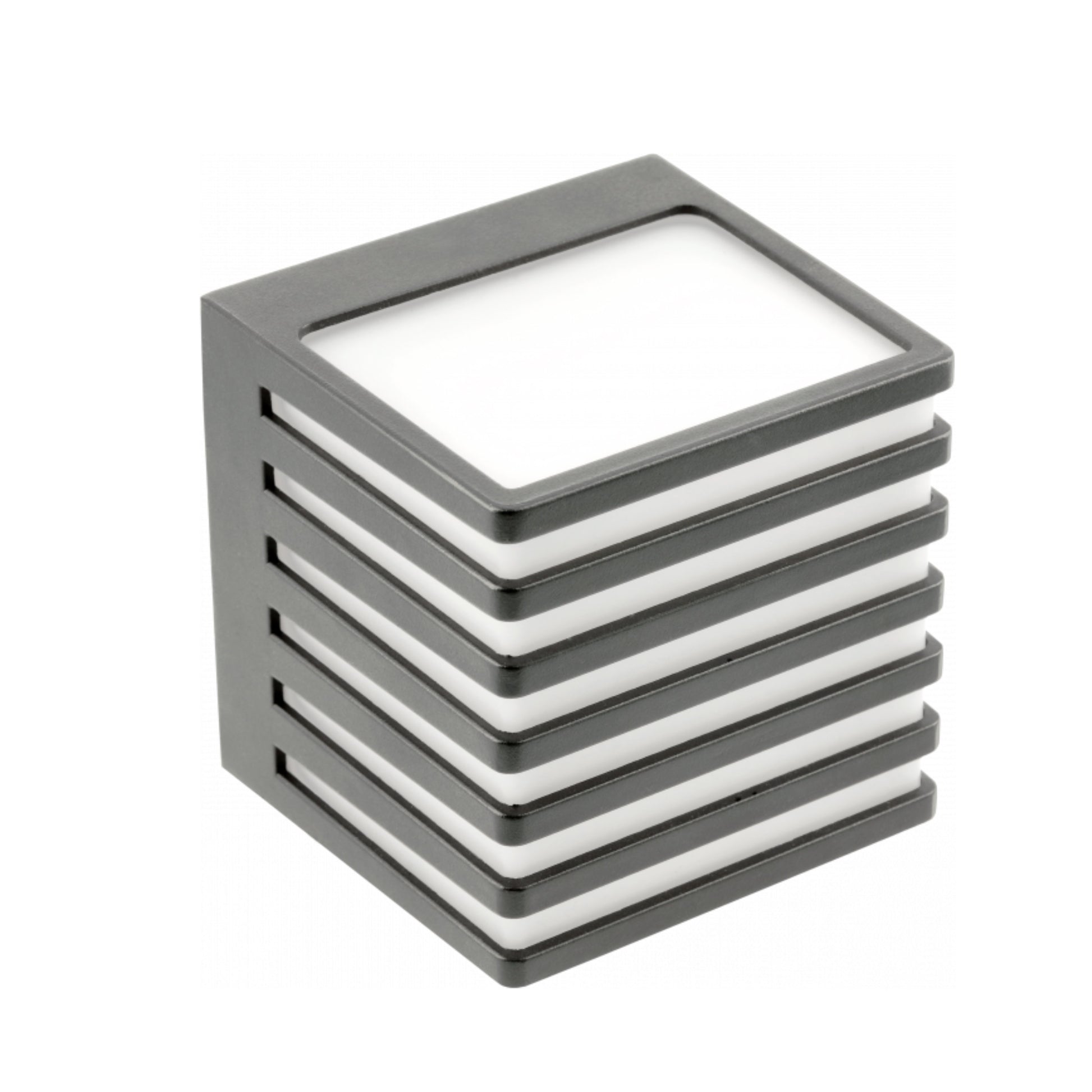 Elegant and modern square design in anthracite grey with a decorative die cast aluminium body and grill and opal polycarbonate diffuser
