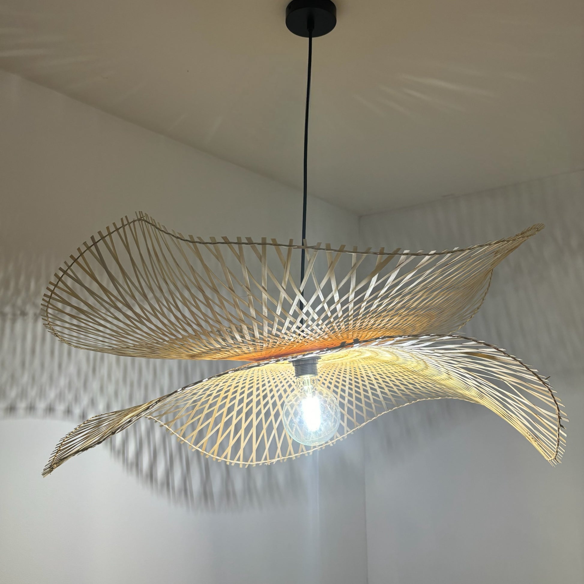 CGC TULUL Duo Extra Large 80cm Natural Bamboo Wave Easy Fit Lampshade