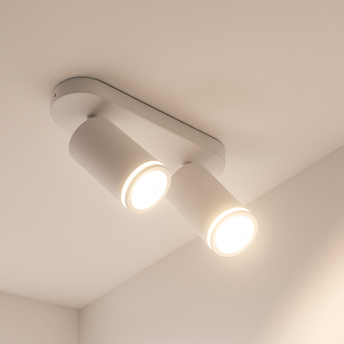 CGC SOLIS White Double GU10 Ceiling Spotlight with Halo Ring Adjustable Twin Spot Bar