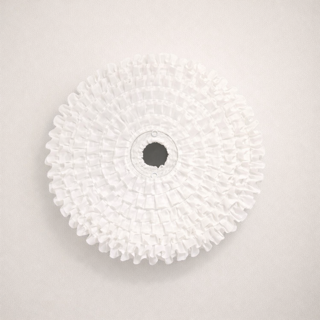 CONSTRUCTION: Extra large size, round shape, white ruffled lampshade shade