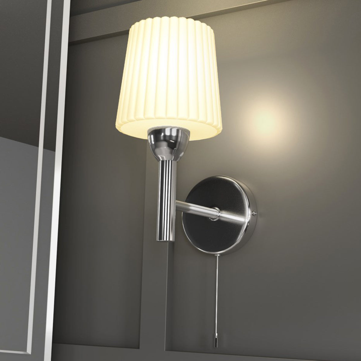 CONSTRUCTION: Traditional styled wall light finished in chrome accents and features a ribbed opal glass cone shaped shade