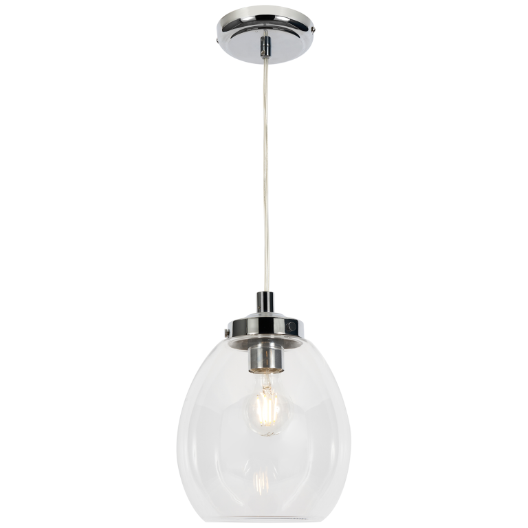 Enhance the sophistication of your living space with our adjustable Amelia pendant light. Crafted to create a stunning visual, this clear glass fixture features chrome accents, making it perfect for contemporary homes. It can be dimmed and is compatible with dimmable bulbs. With its IP rating, it is suitable for bathroom use. Elevate your decor with a touch of elegance.