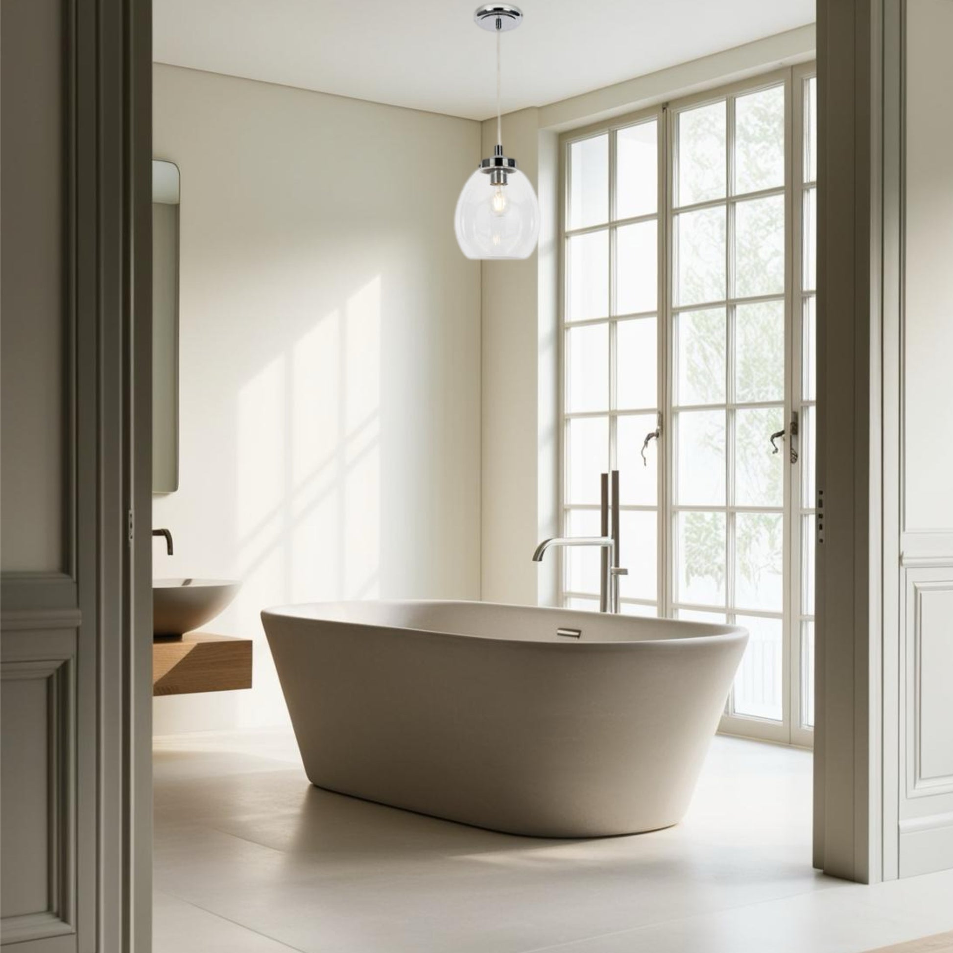CGC AMELIA Clear Glass Lampshade E27 Pendant Cord with Chrome Base IP44 Suitable For Bathrooms