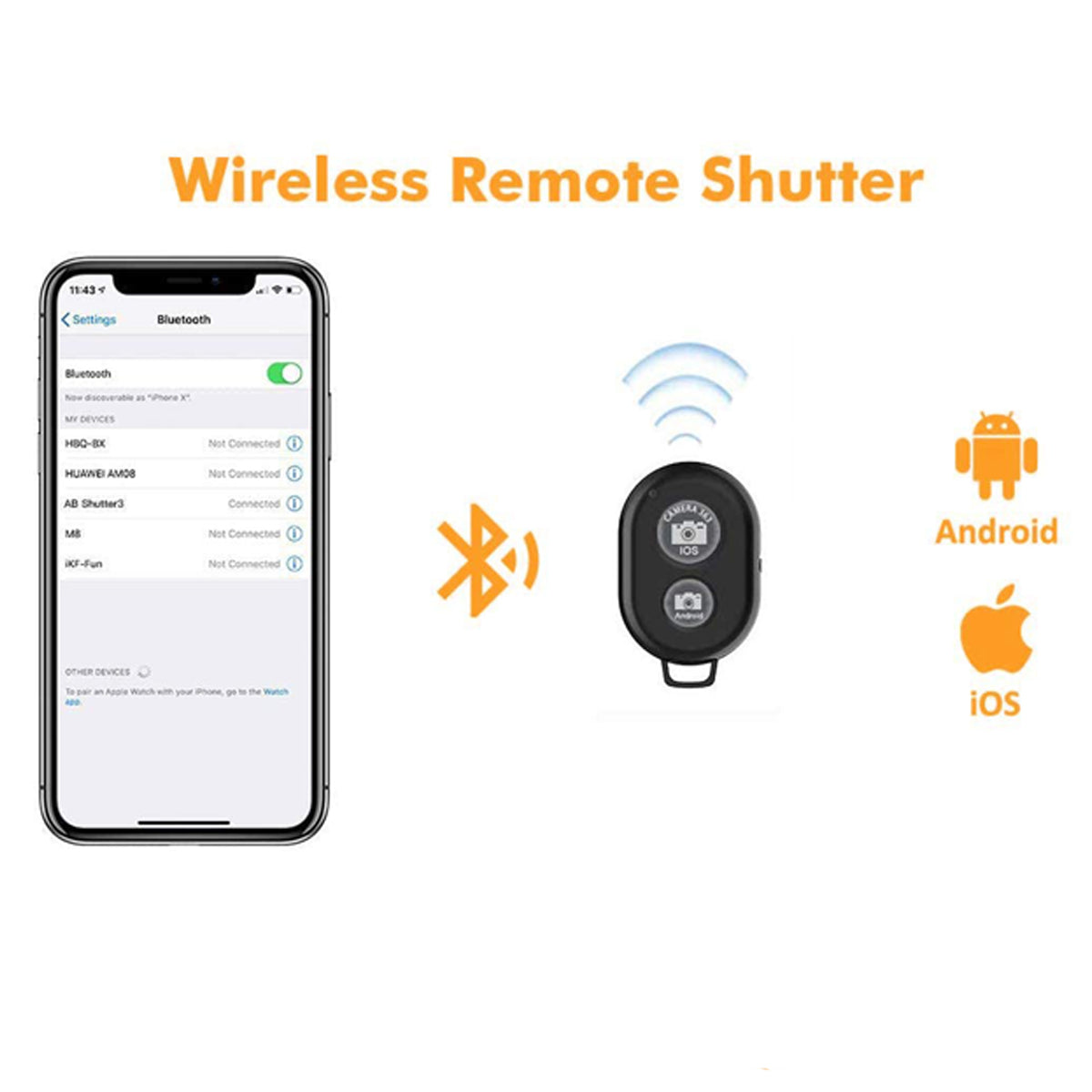 WIRELESS REMOTE: Comes with battery included, on and off switch, for use with either Android or iPhone - remote needs to be switched on, open Bluetooth menu and click on remote on menu