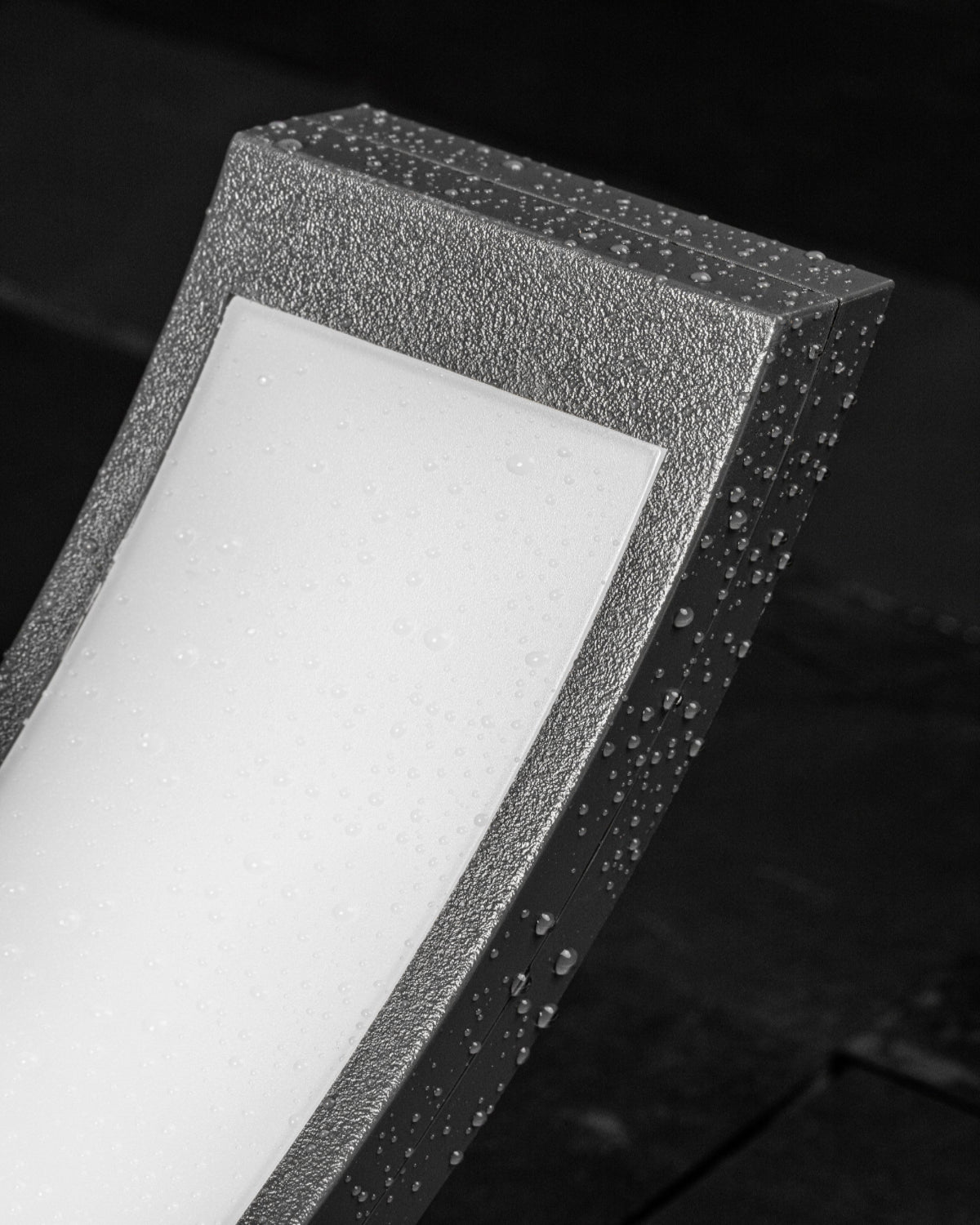 Paris has been designed for use outdoors. It features IP code IP54, which means that the light is protected from dirt and moisture. This LED outdoor wall light is simple and modern in design to create a minimalist light. The LEDs are housed behind an opal white panel made of polycarbonate.