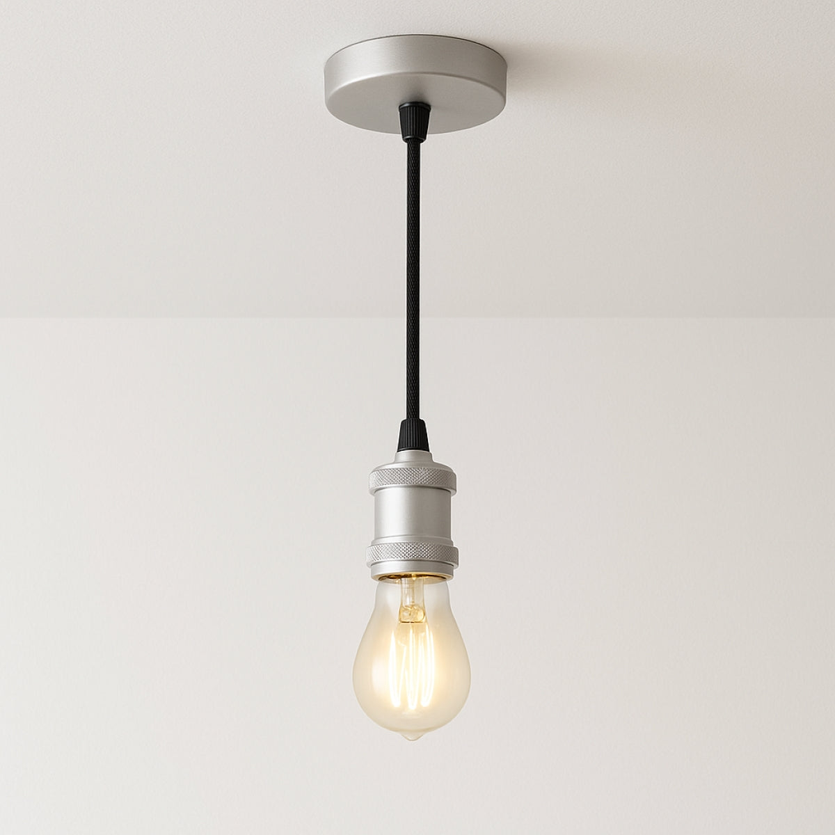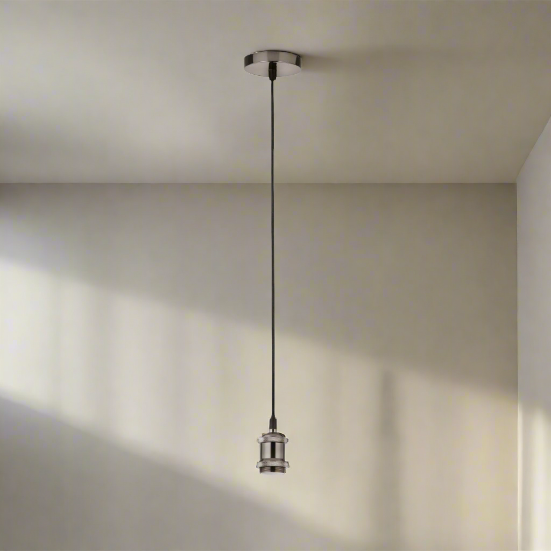 CGC CASSIE Satin Silver 1.5m adjustable E27 Ceiling Pendant and Matching ceiling Rose