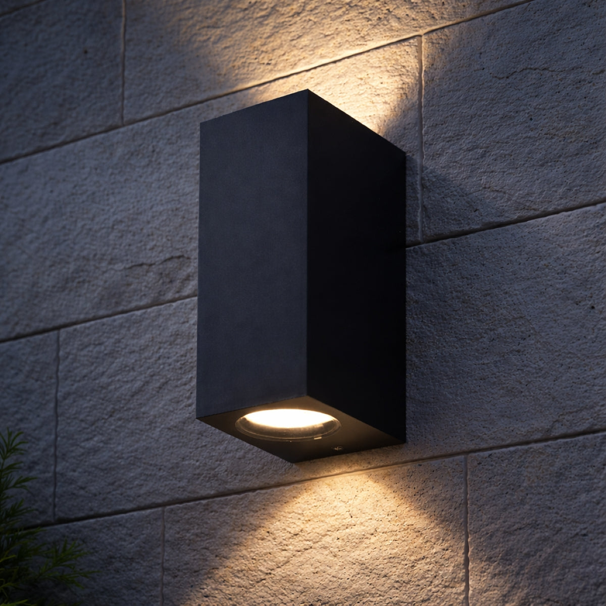 Our Eileen black up and down wall mounted rectangle outdoor light would look perfect in a modern or more traditional home design. Outside wall lights can provide atmospheric light in your garden, at the front door or on the terrace as well as a great security solution. It is designed for durability and longevity with its robust material producing a fully weatherproof and water resistant light fitting.