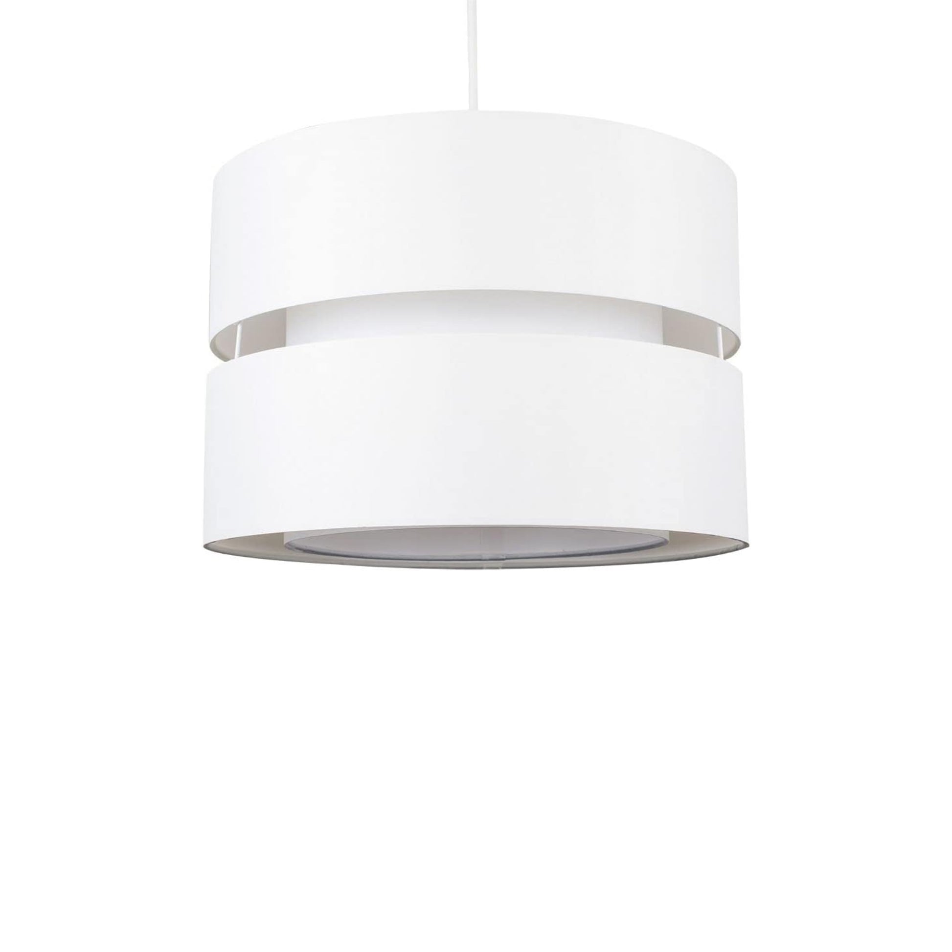 Our Gayle easy fit two tiered luxury fabric double layered shade is contemporary in its appearance and we have designed the shade to suit a range of interiors. Easy to fit simply attached to an existing pendant flitting. It is crafted from high quality fabric material in two layers and complimented with a matching inner which looks beautiful when light shines through. The shade has been made to fit both a ceiling light or lamp base.