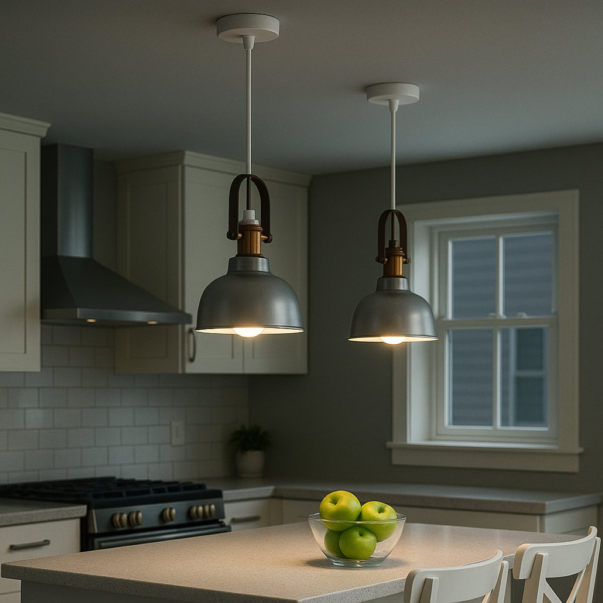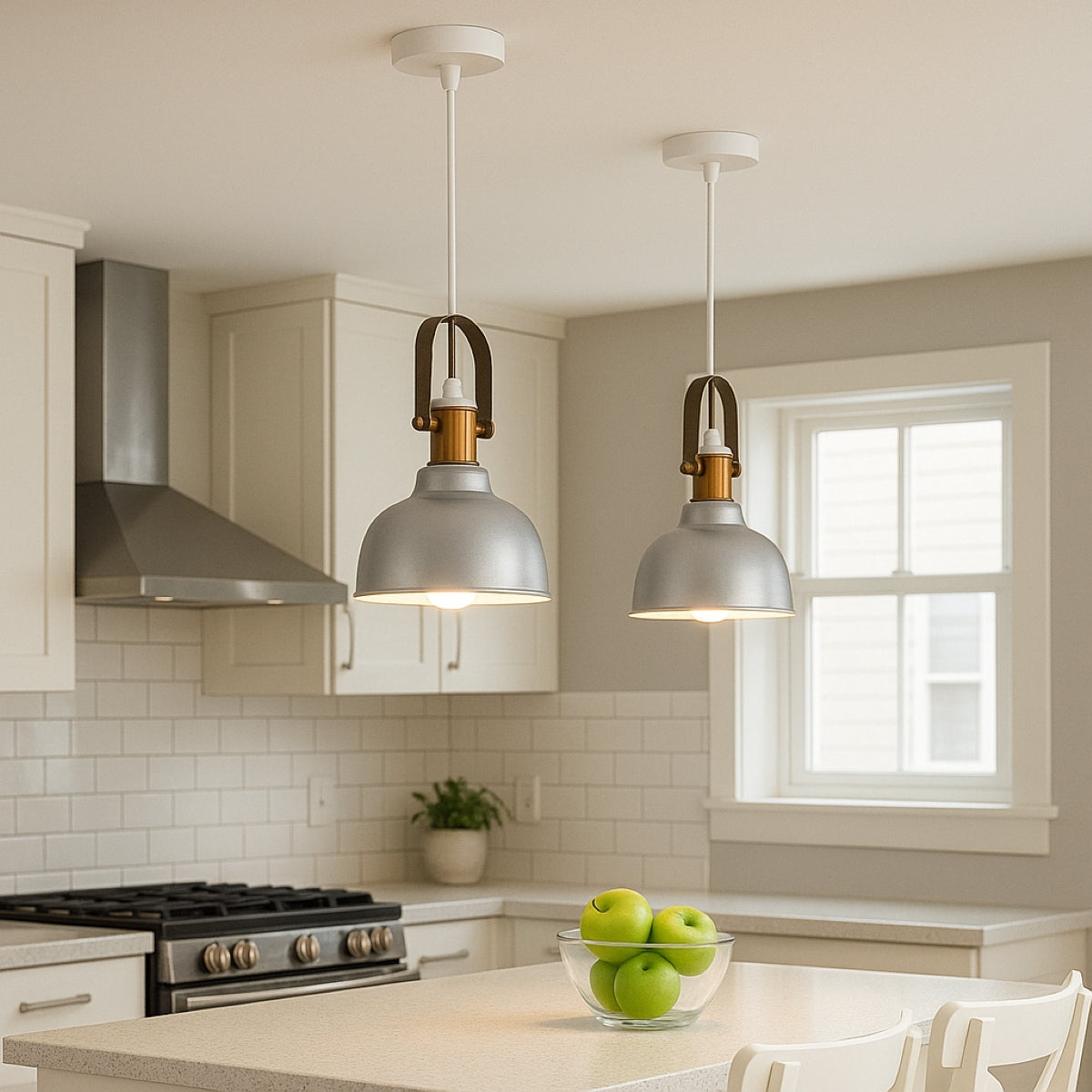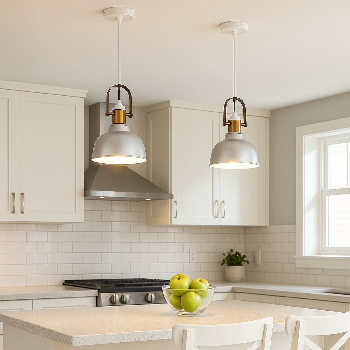 Industrial lighting has been very popular in the lighting sector for some time. This is not only because the resulting contrast has such a harmonious appearance, but also because of the fantastic lighting effect that is produced by the white inner surface of the shade. Our Georgie pendant light is a very attractive light fitting for all kinds of modern living space especially over counter and kitchen islands.